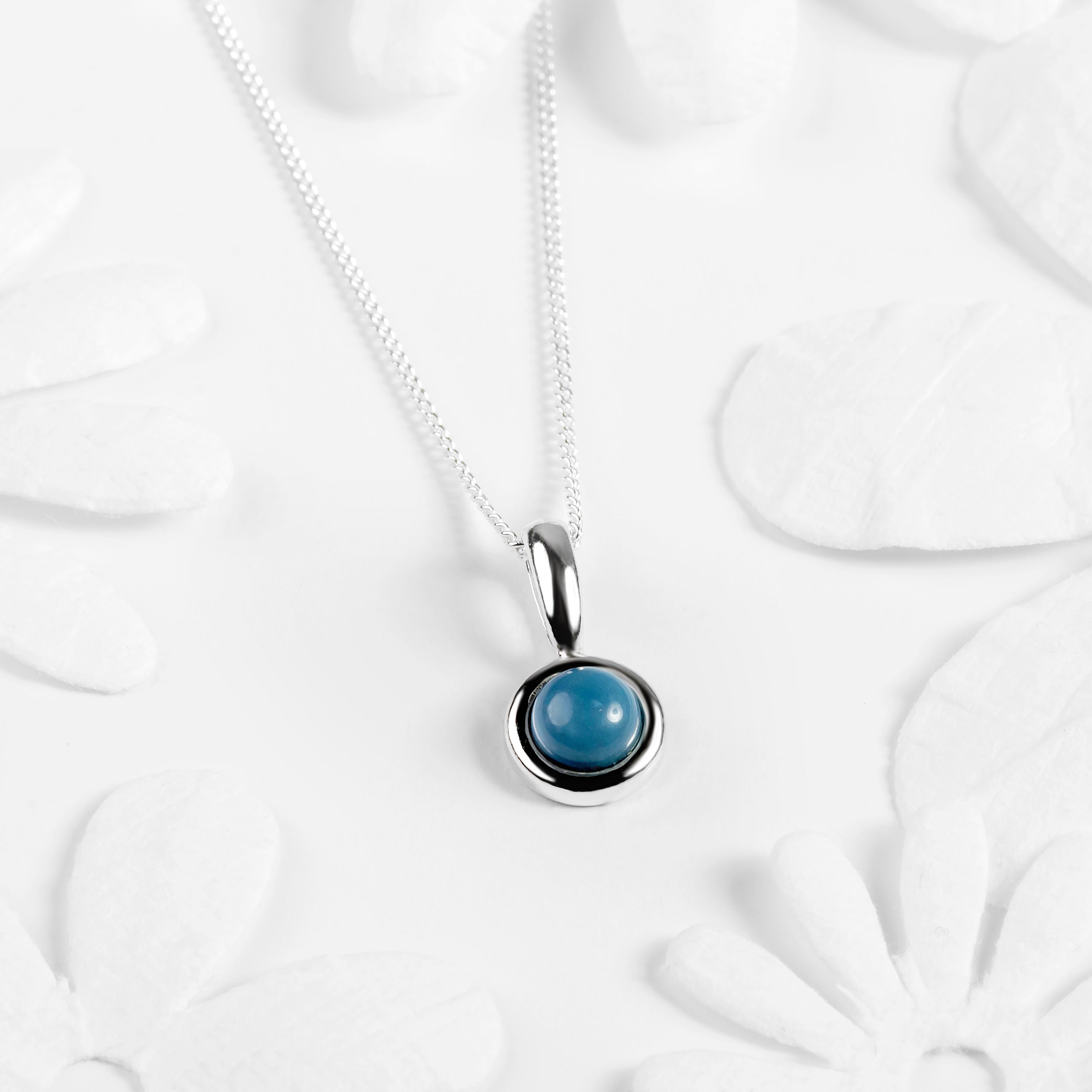 Crafted in 925 silver with a natural Blue Opal gemstone rounded charm, this necklace is perfect for achieving a 'layered look' or for those who prefer something dainty for everyday wearing.