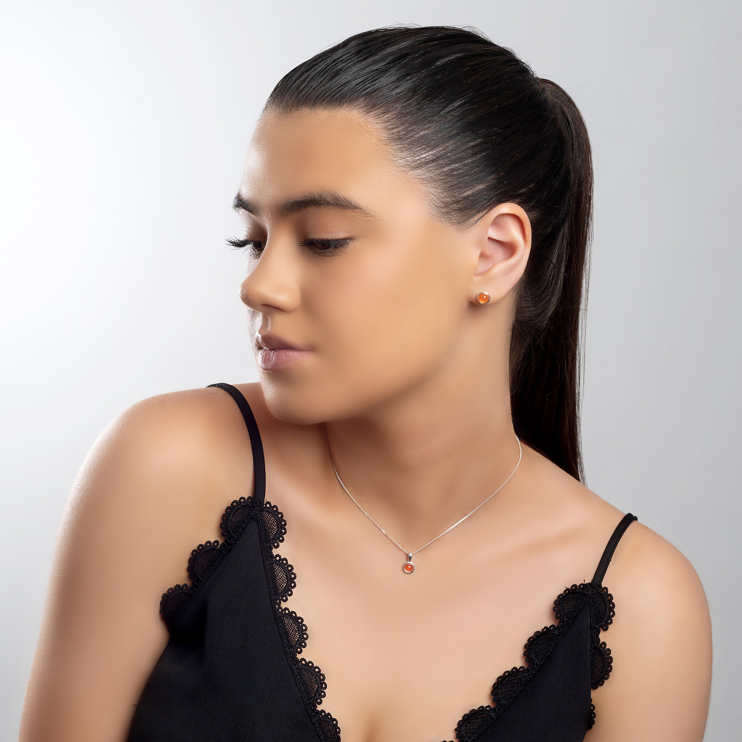 Keep it subtle and minimal with our Silver and Carnelian Round Charm Necklace.
