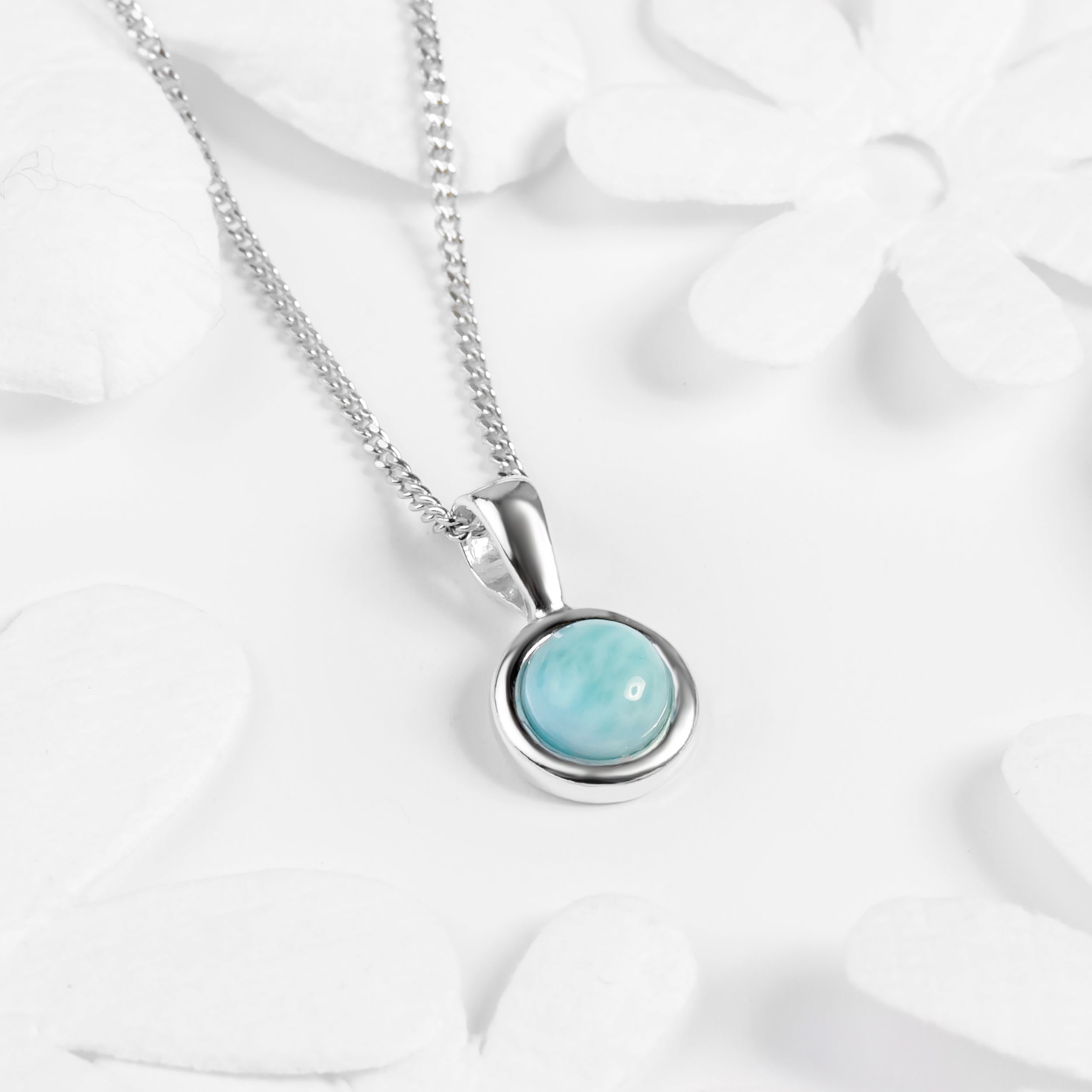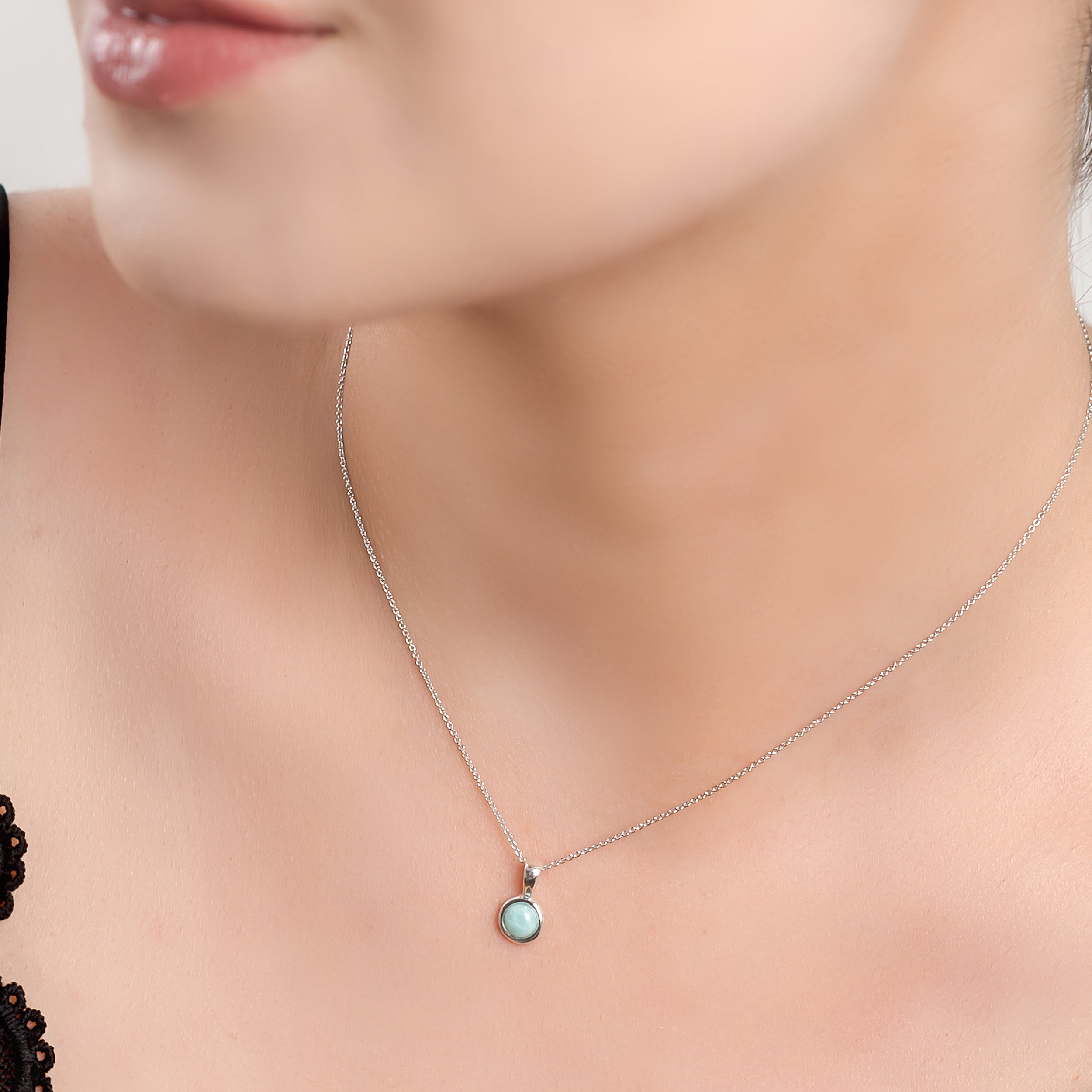 Keep it subtle and minimal with our Silver and Larimar Round Charm Necklace.