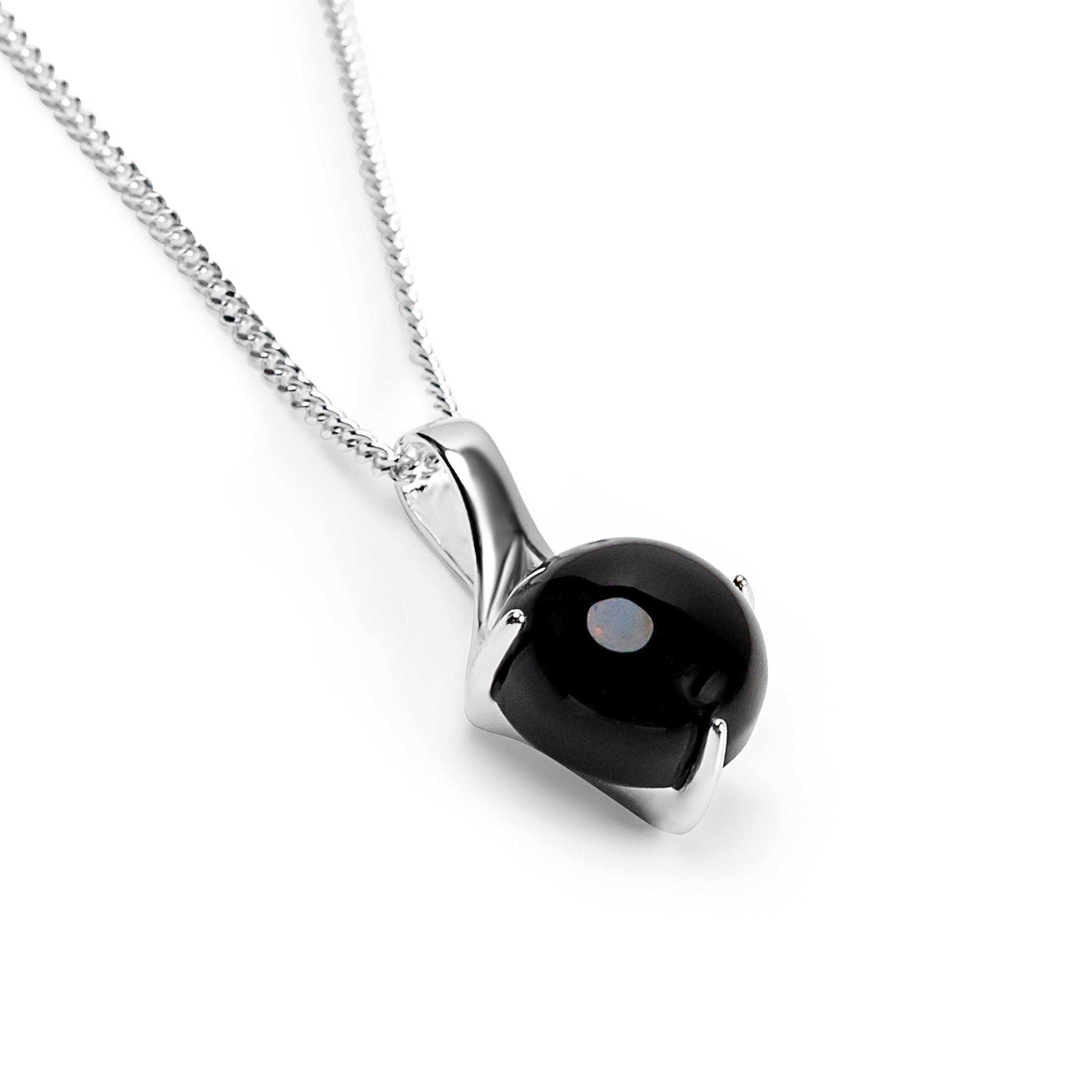 Handcrafted in Sterling Silver this necklaces is adorned with a single round Black Onyx gemstone which is carefully secured by 3 silver claws. Comes complete solid silver curb chain.