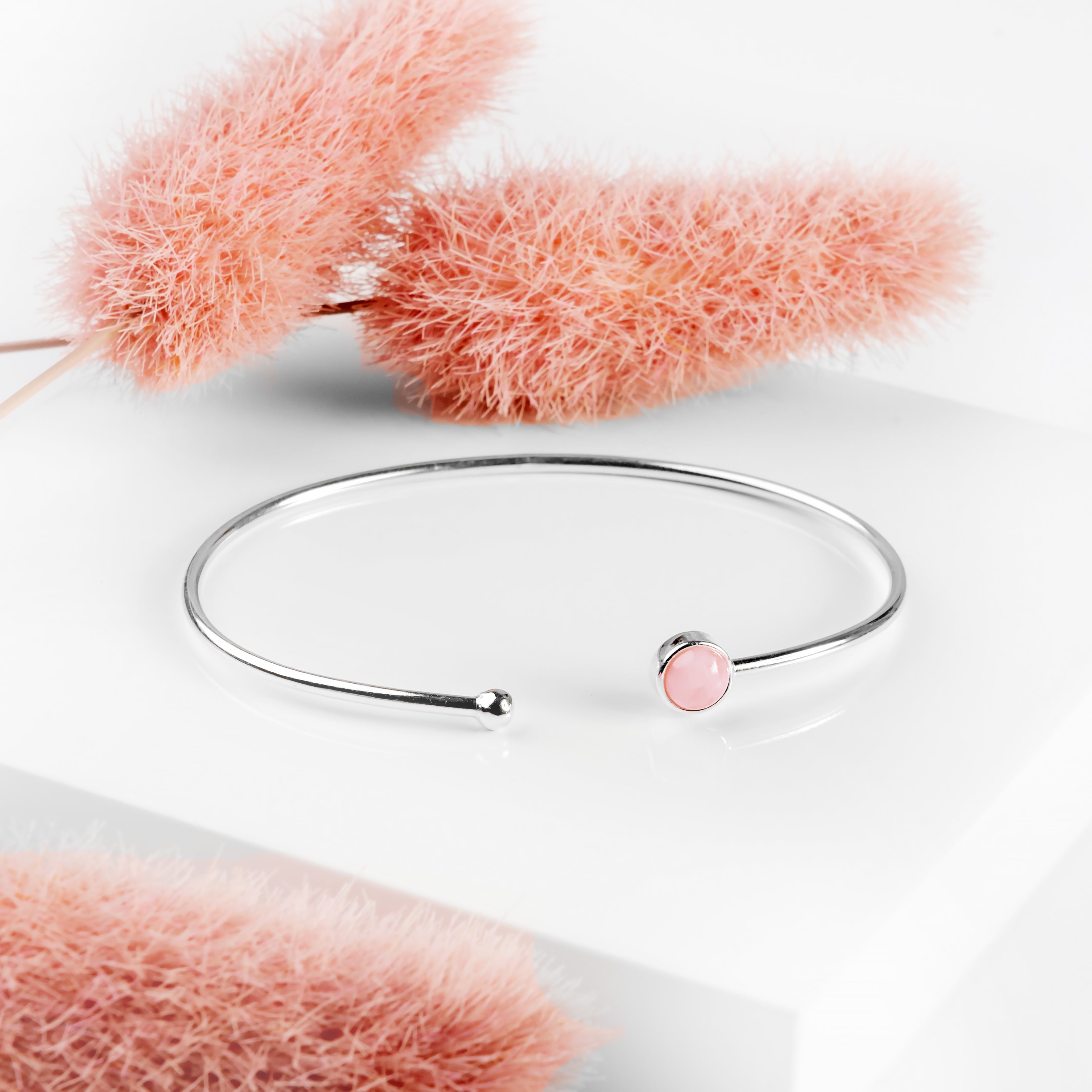 Add a touch of glamour to our everyday accessories with our Silver and Pink Peruvian Opal Simple Solo Bangle.