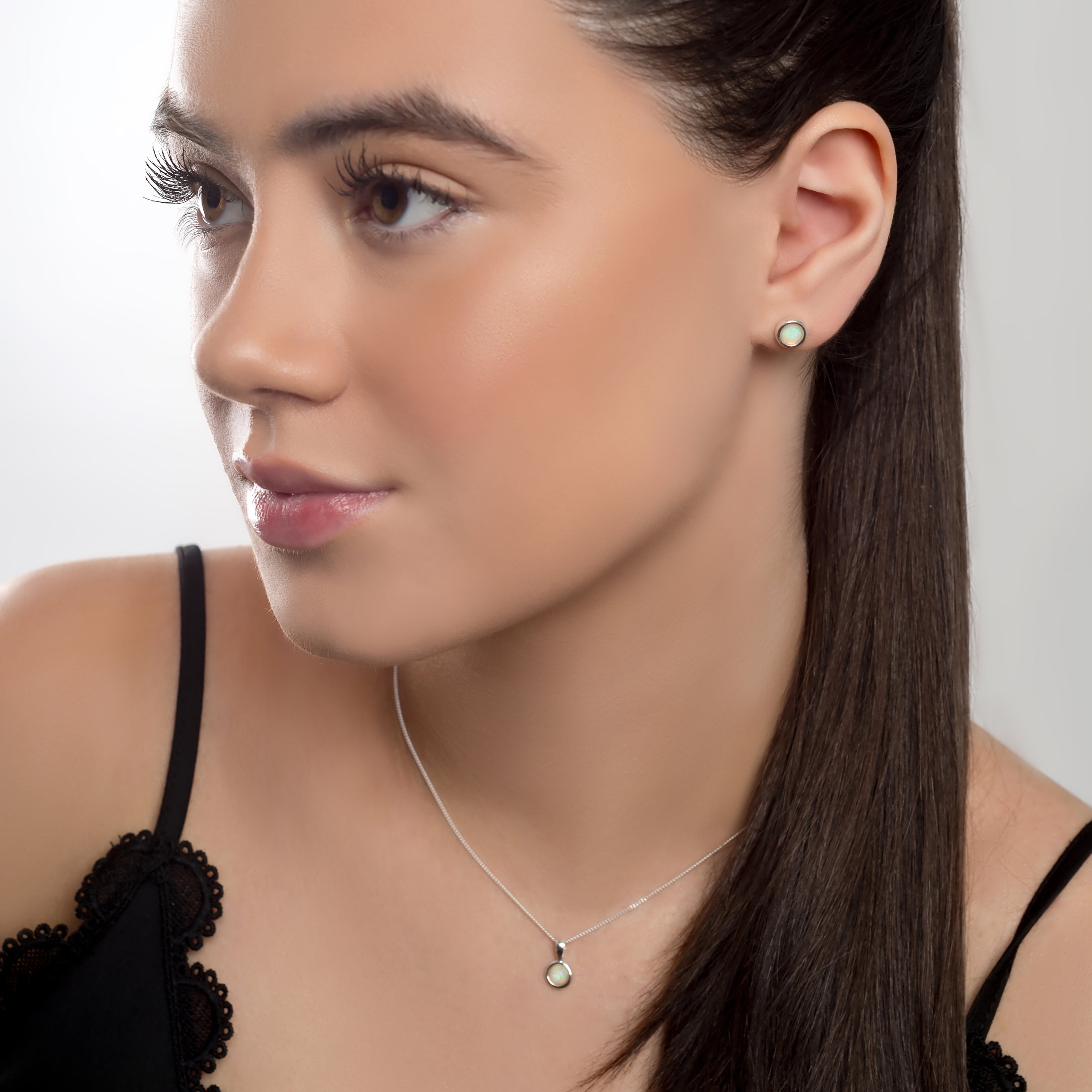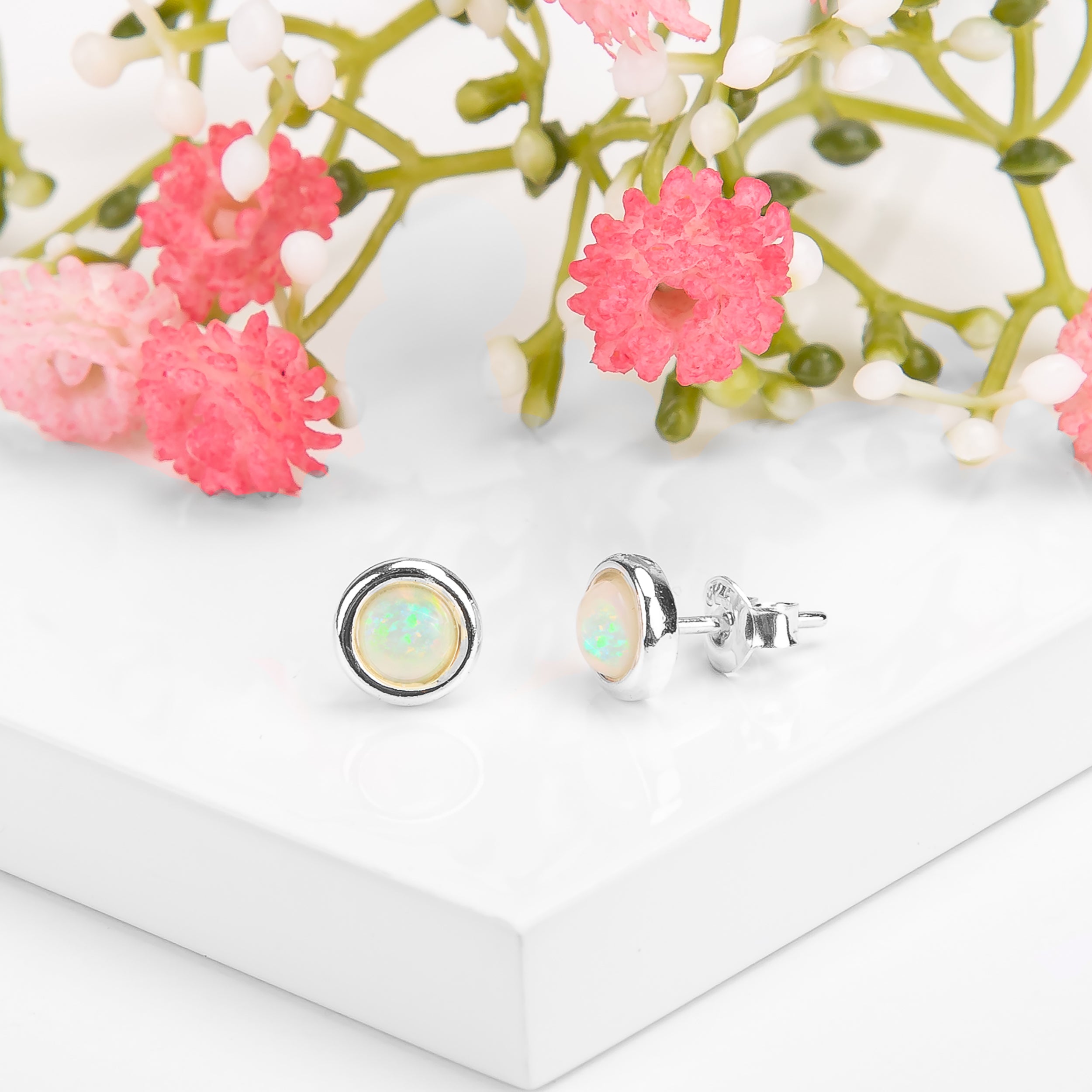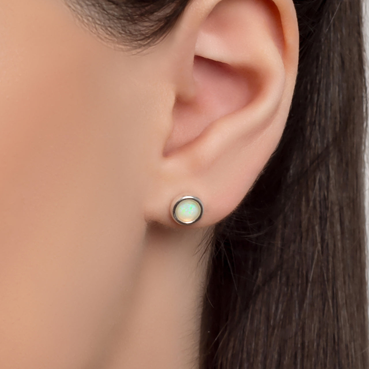 Silver and Ethiopian Opal Small Round Stud Earrings are perfect for achieving casual everyday style.