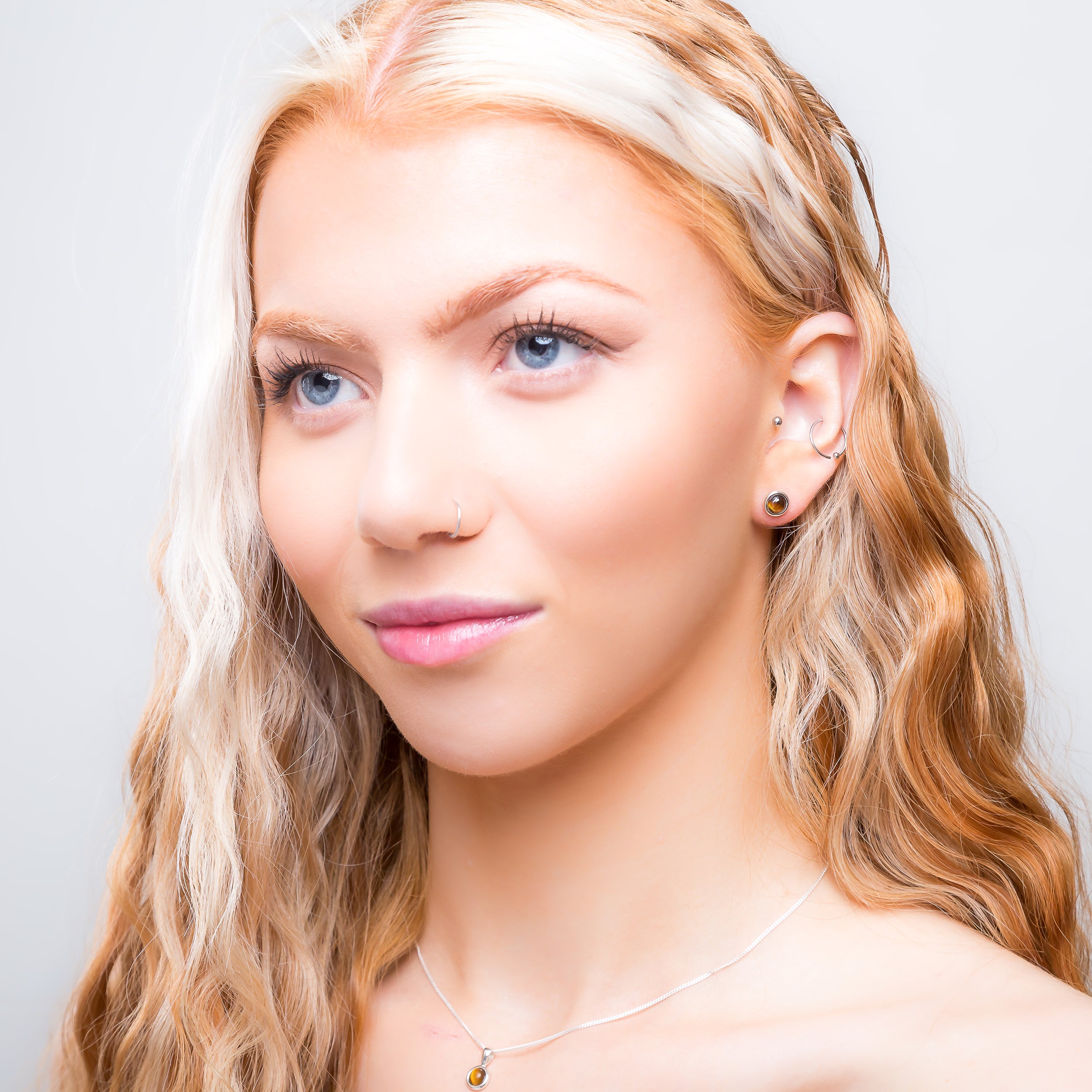 Silver and Tiger's Eye Small Round Stud Earrings are perfect for achieving casual everyday style.