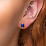 Each earring has a single round royal blue Lapis Lazuli gemstone which has been set into solid 925 silver and then plated in 24ct Gold. Complete with a stem post and butterfly back for easy and secure wearing.