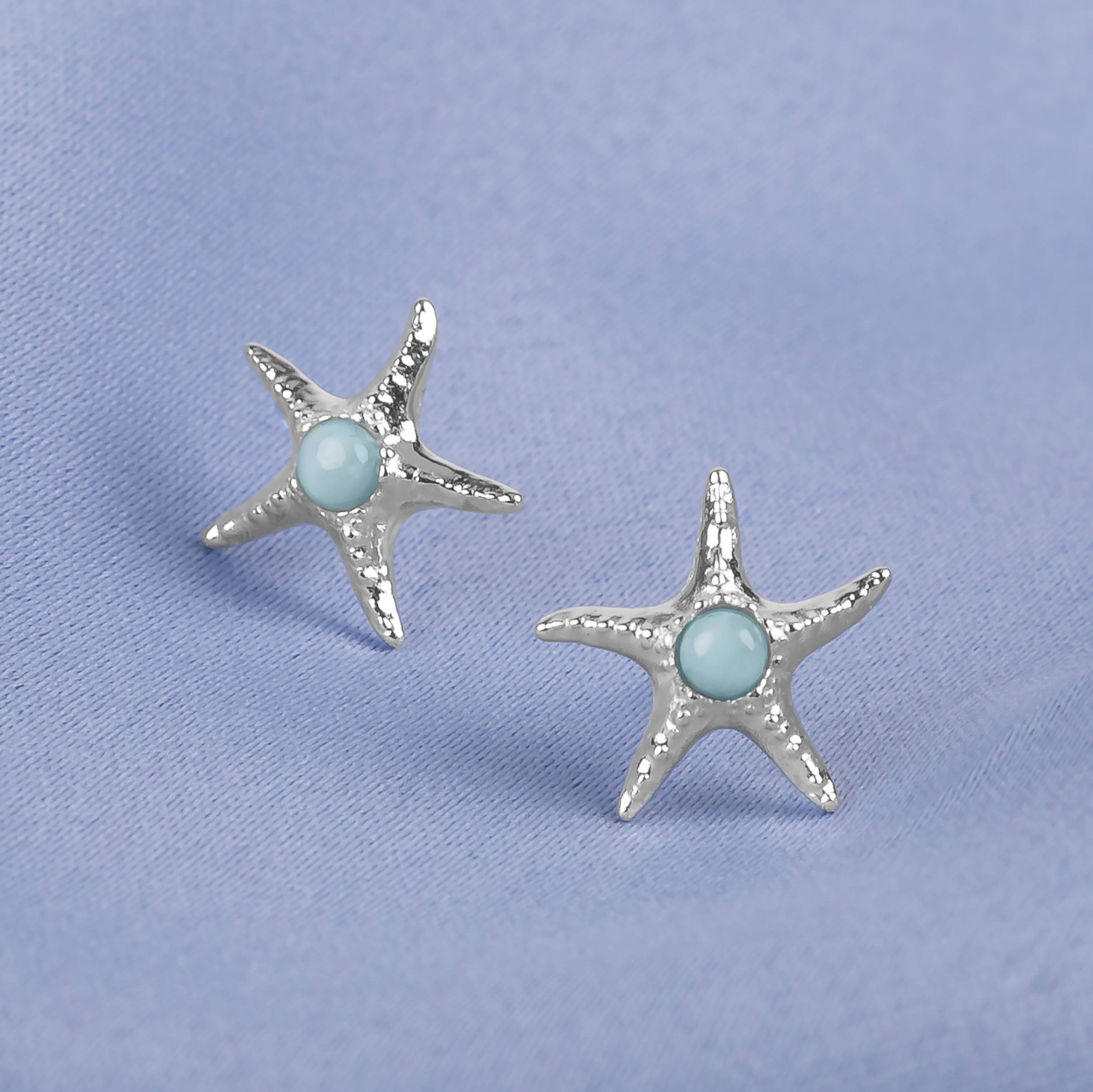 Dream of sunny beach days with our Silver and Larimar Starfish Stud Earrings.