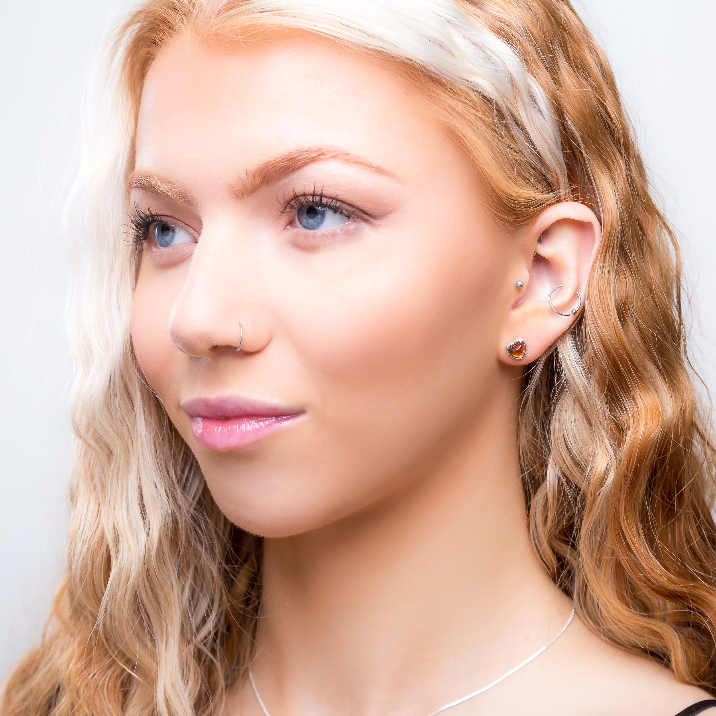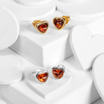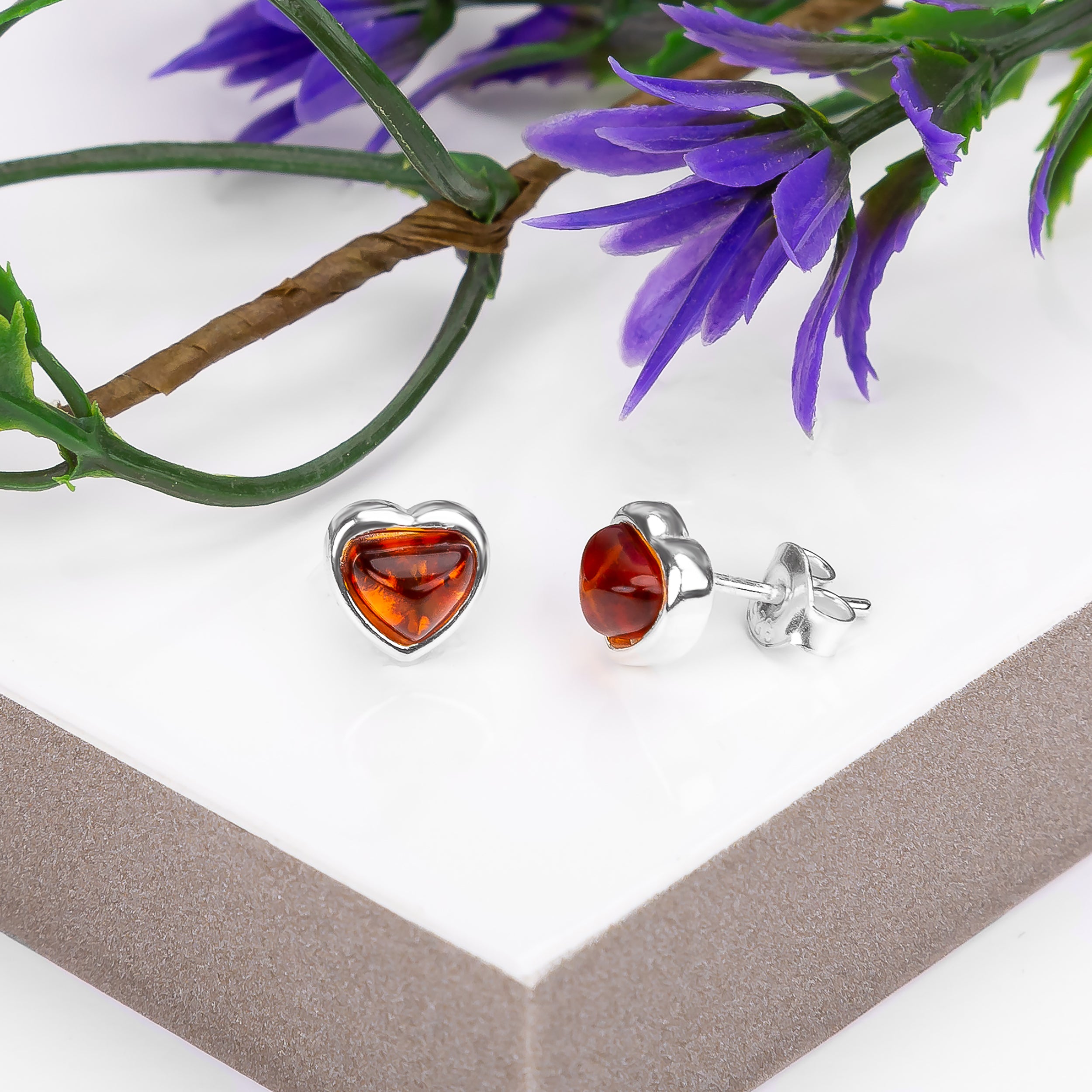 Crafted in 925 silver, these sweet earrings each have a genuine Baltic Amber gemstone which has been carefully designed into a heart shape to fit inside the silver stud.