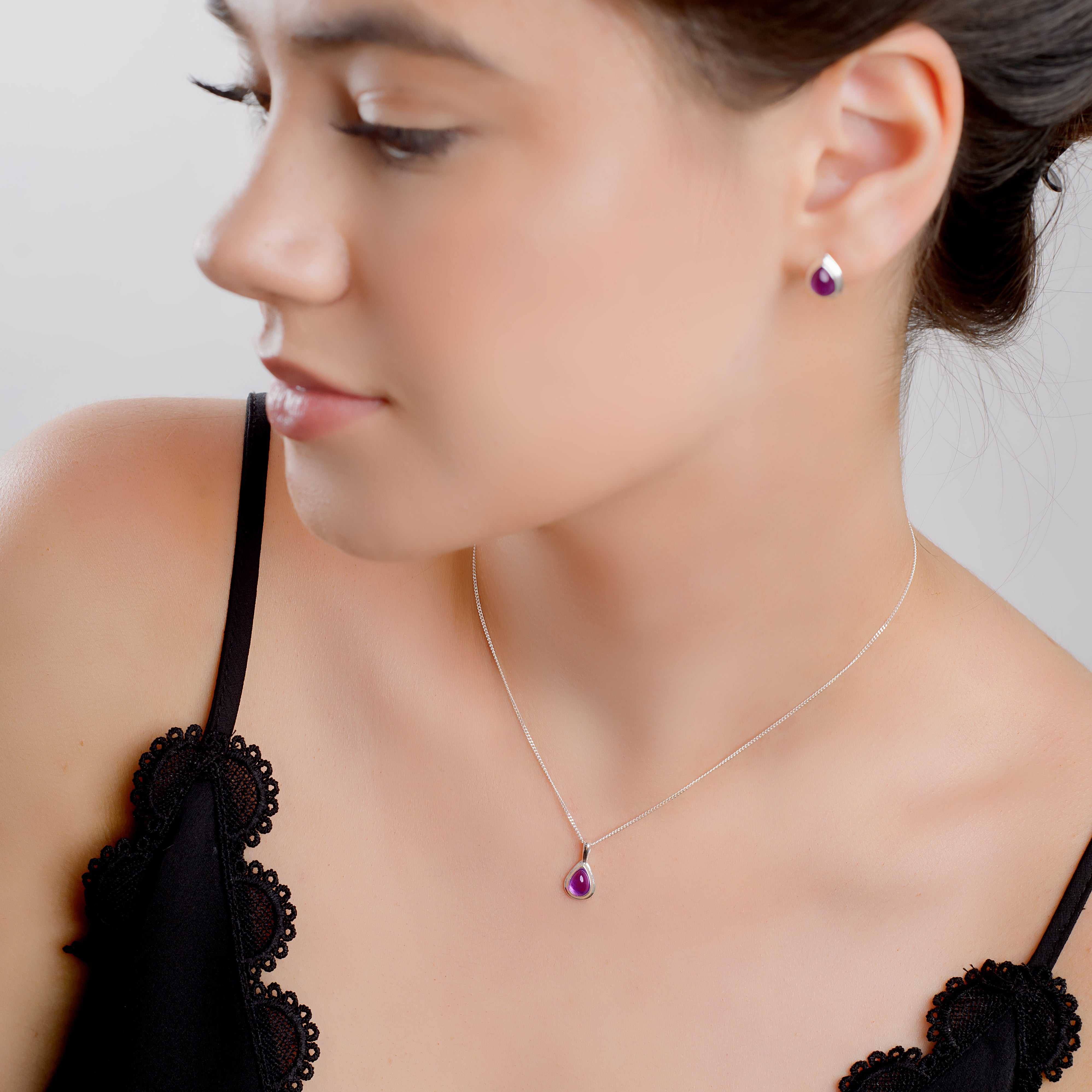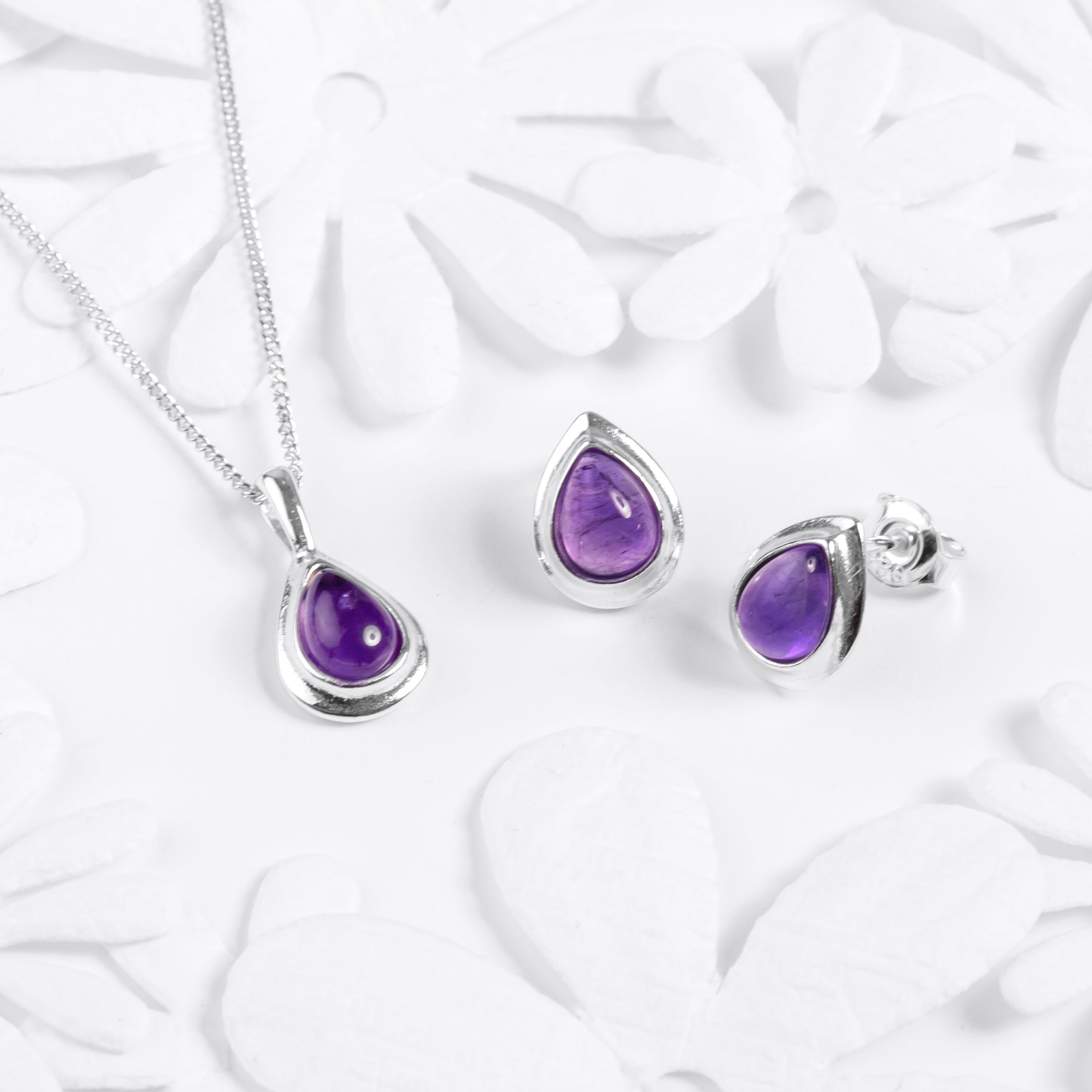 Classic Teardrop Stud Earrings in Silver and Amethyst