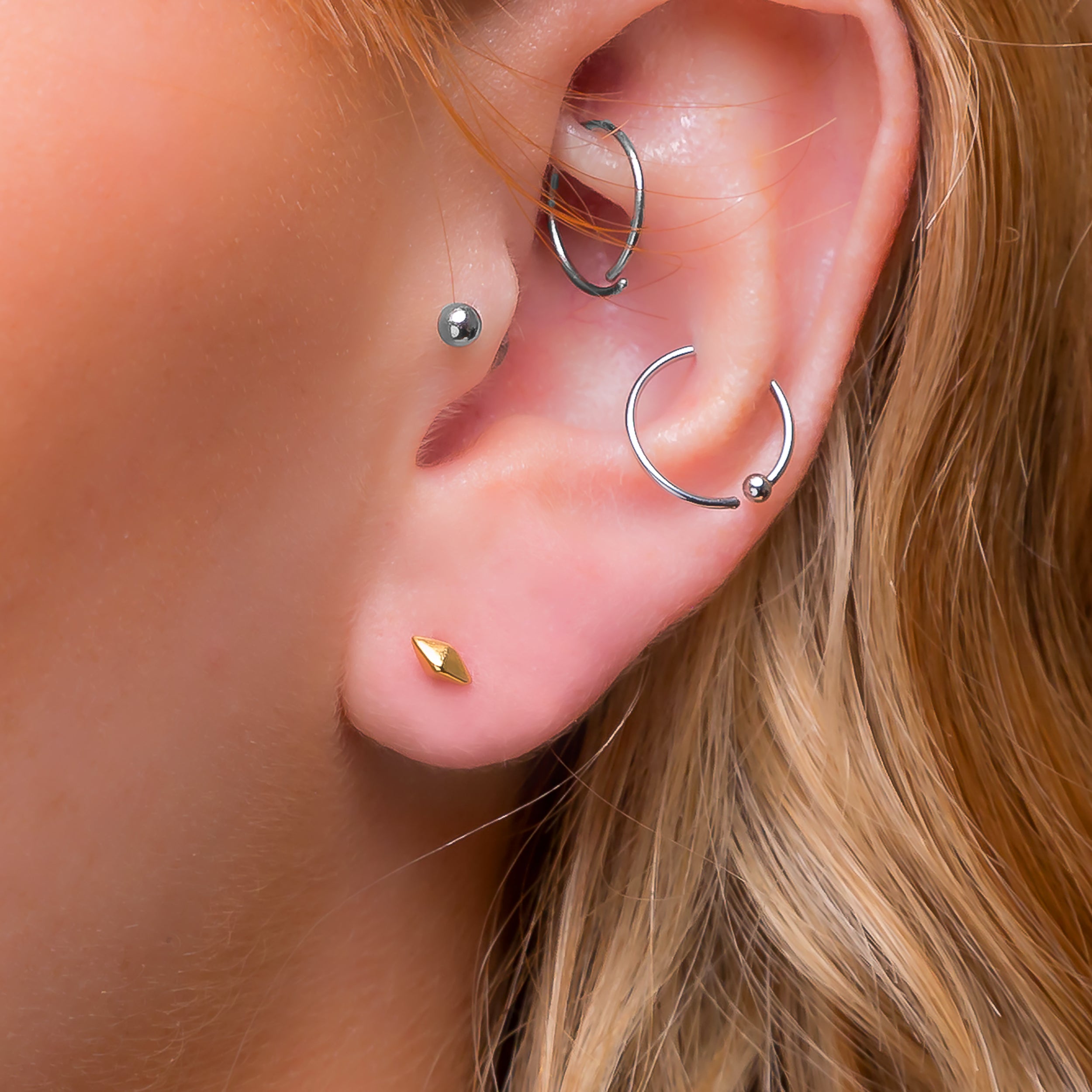 Tiny Rhombus Stud Earrings in Silver with 24ct Gold