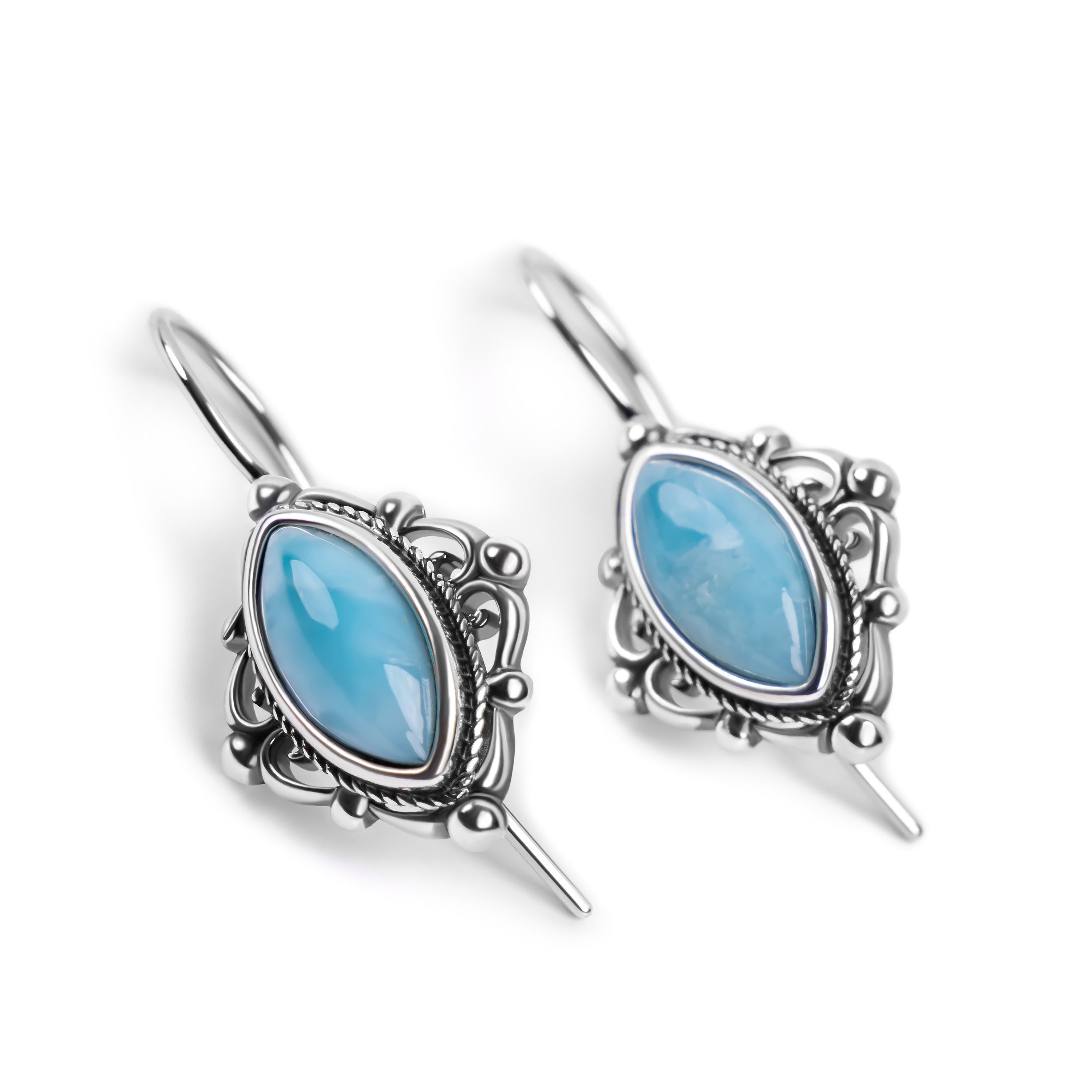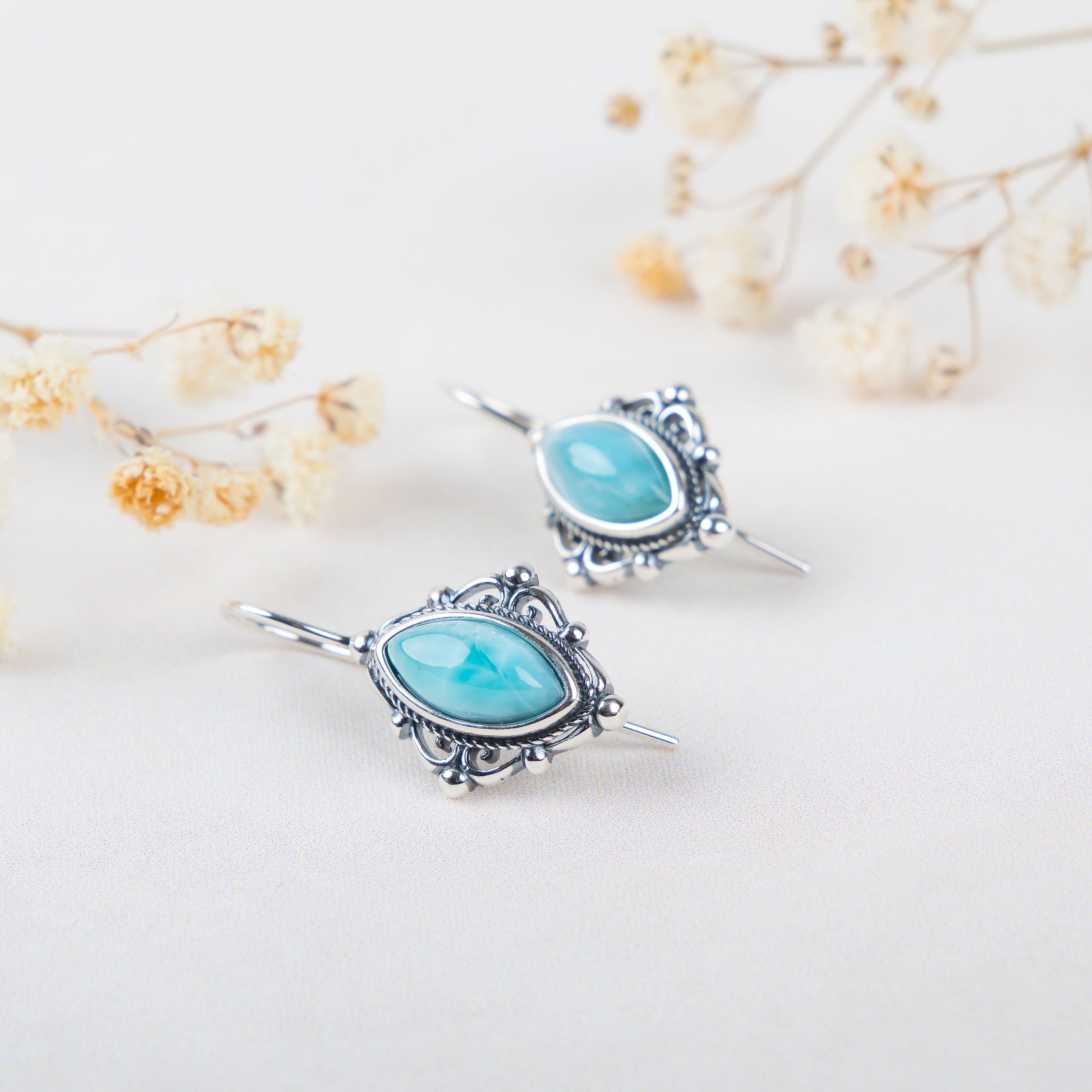 Silver hook earrings with a beautiful silver detailing and diamond shape Blue Lace Agate.