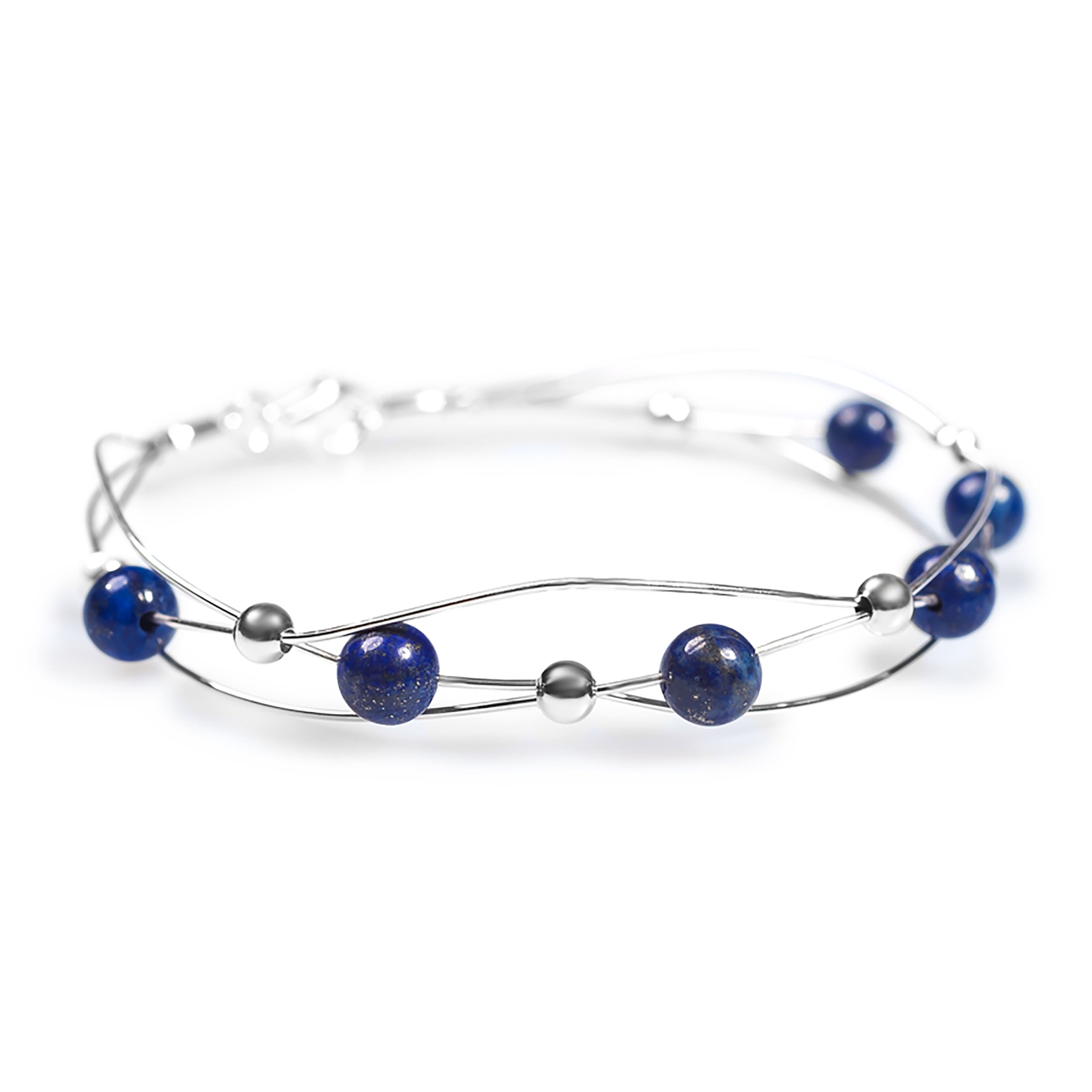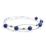 Carefully handcrafted in 925 silver and adorned with natural Lapis Lazuli gemstones spaced evenly across entwined silver wire. Finished with miniature silver beads between each of the stones. Complete with a bolt ring clasp for secure and easy fastening.