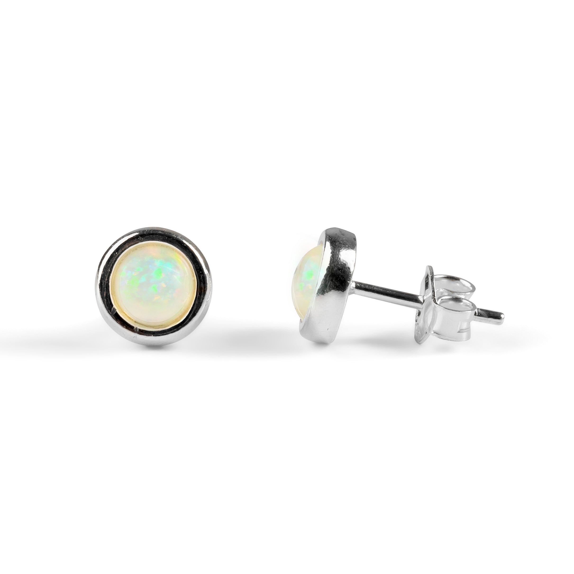 Small Round Stud Earrings in Silver and Ethiopian Opal