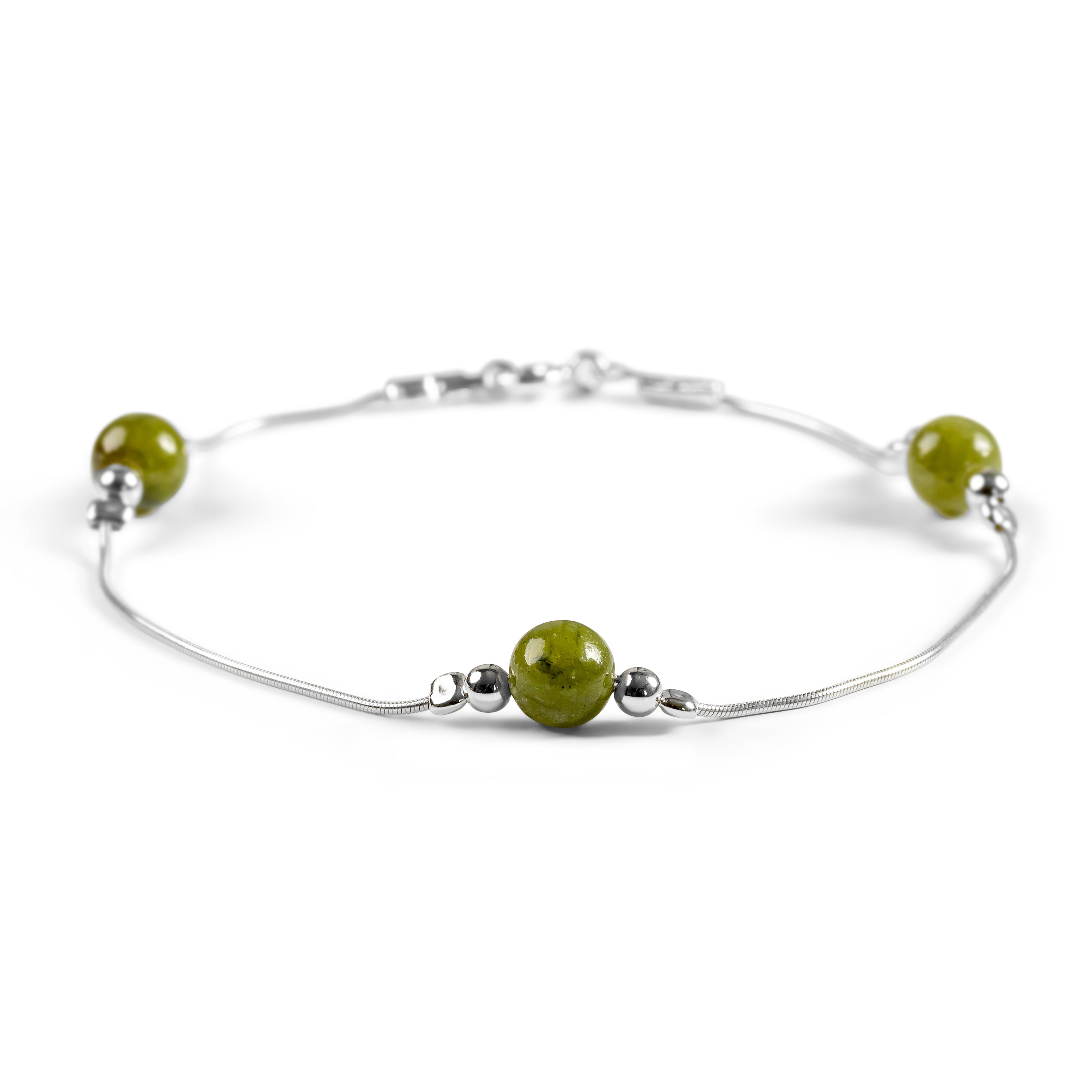 Bead Bracelet in Silver and Canadian Jade