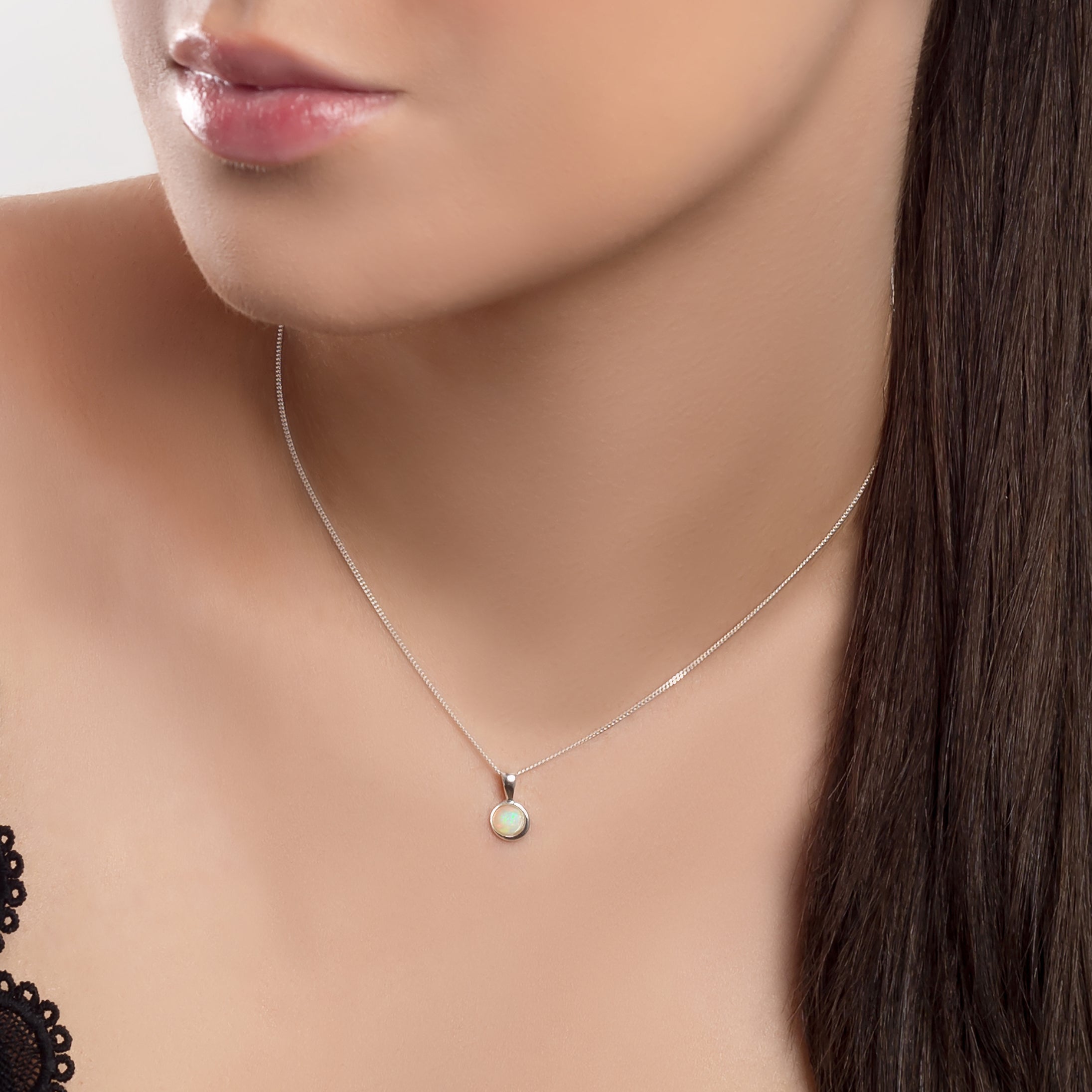 Round Charm Necklace in Silver and Ethiopian Opal