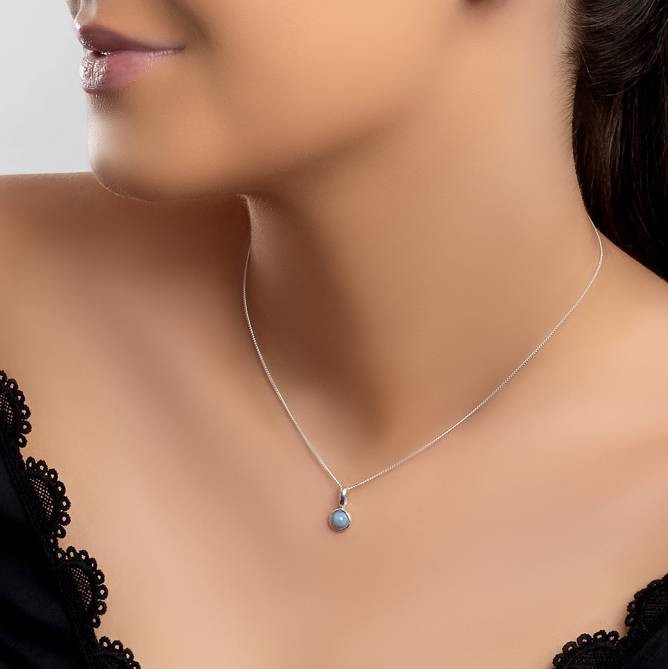 Round Charm Necklace in Silver and Blue Opal