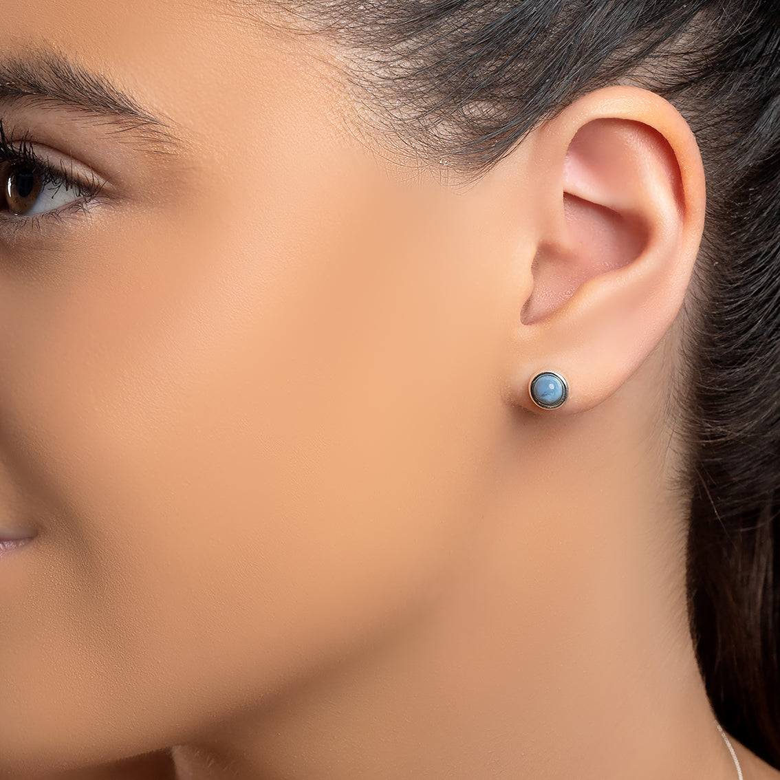 Small Round Stud Earrings in Silver and Owyhee Blue Opal