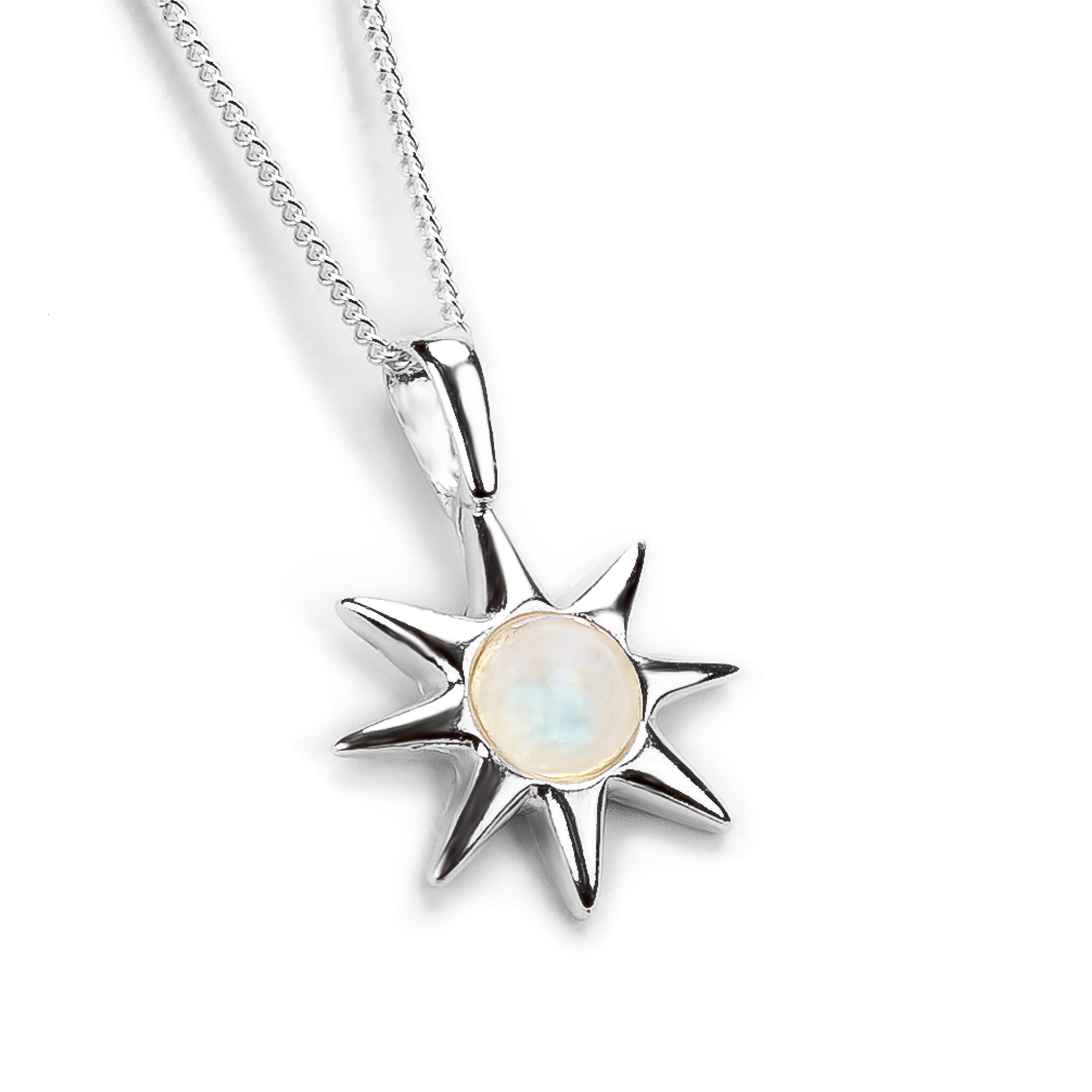Symbol of Hope Sun Necklace in Silver and Moonstone