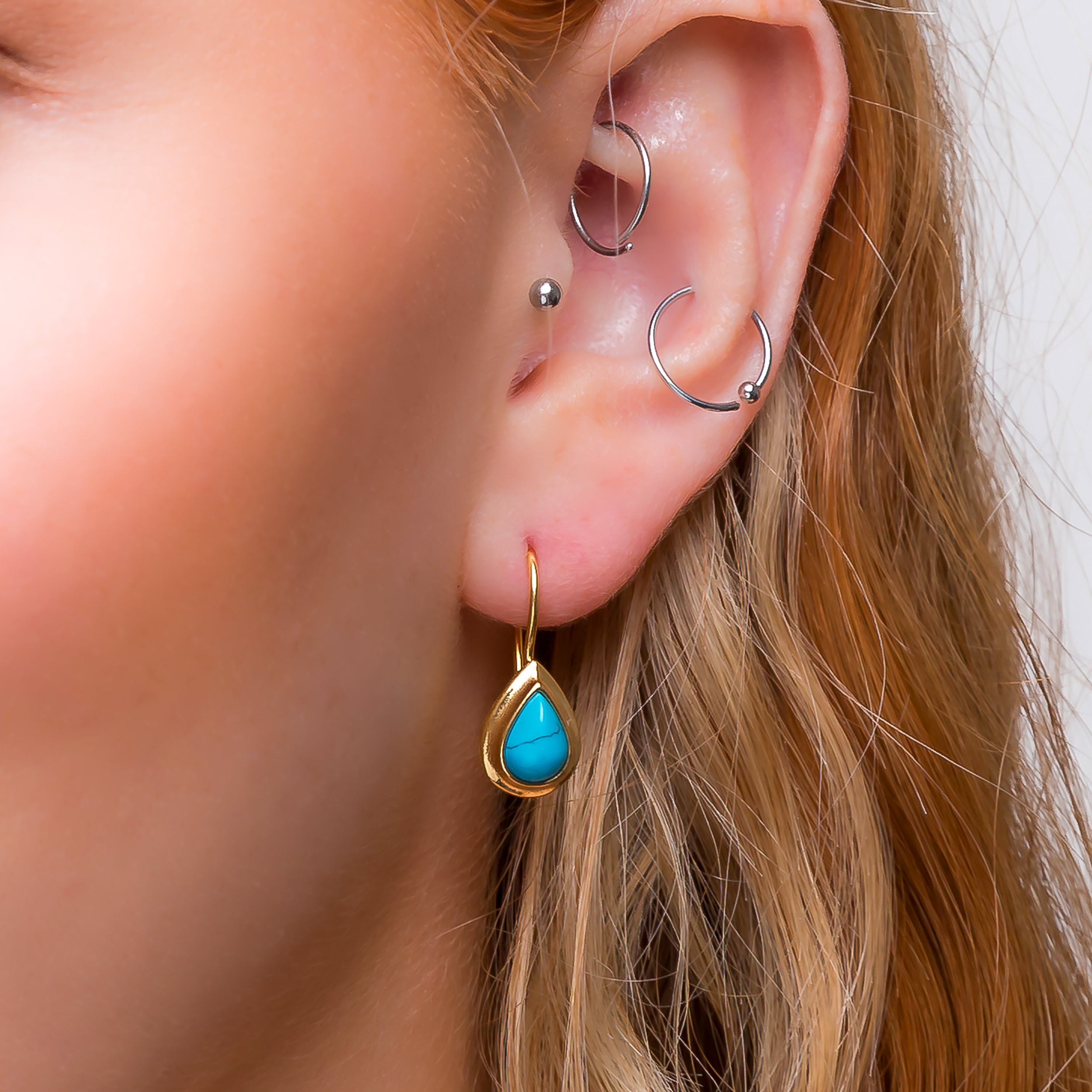 Classic Teardrop Hook Earrings in Silver with 24ct Gold & Turquoise