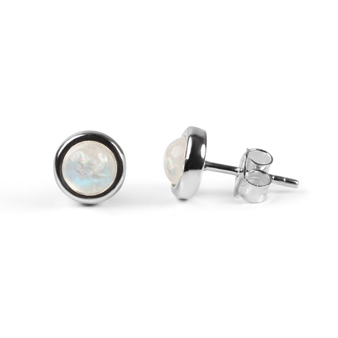 Small Round Stud Earrings in Silver and Ethiopian Opal