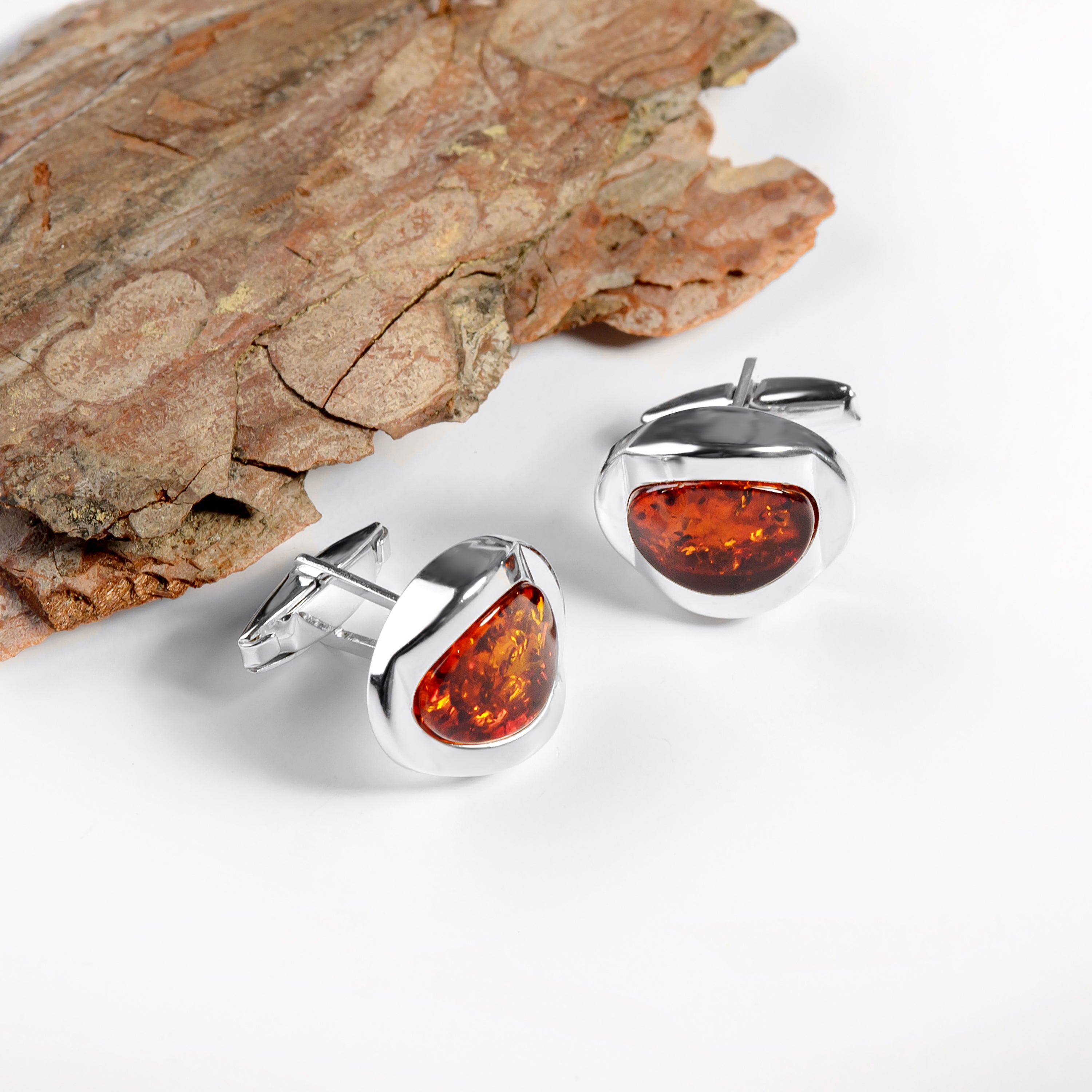 Beautifully handcrafted in solid 925 silver, each cufflink is set with a oval shaped genuine Baltic Amber gemstone. Set in curved silver, they will add a pop of colour and shine to any shirt.