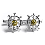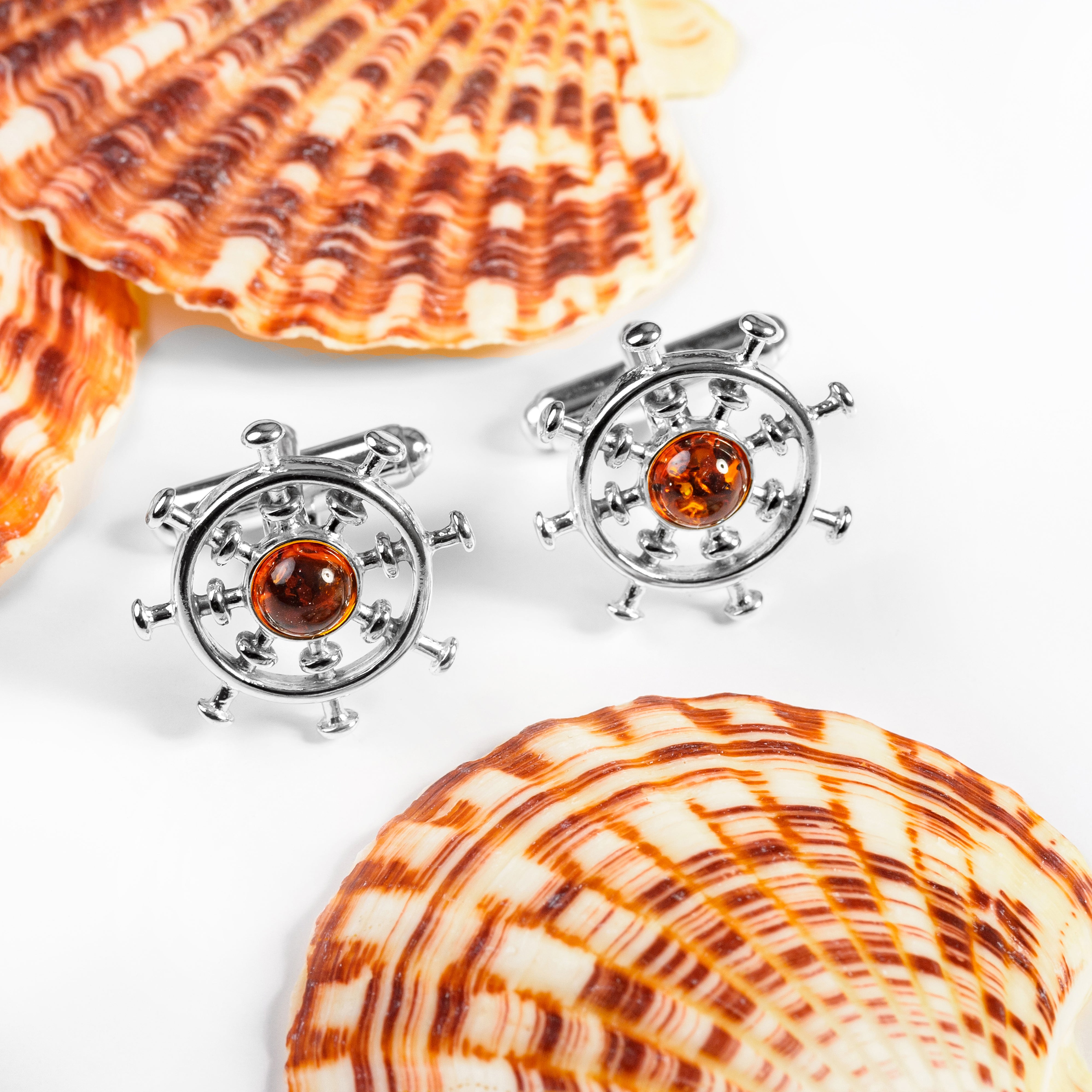 Ahoy there! Our stylish silver Ship Wheel Cufflinks are ideal for someone who likes to be out on the waves. Handcrafted in solid silver with Baltic Amber gemstone this pair of ship wheel shaped cufflinks are sure to become a favourite suit accessory.