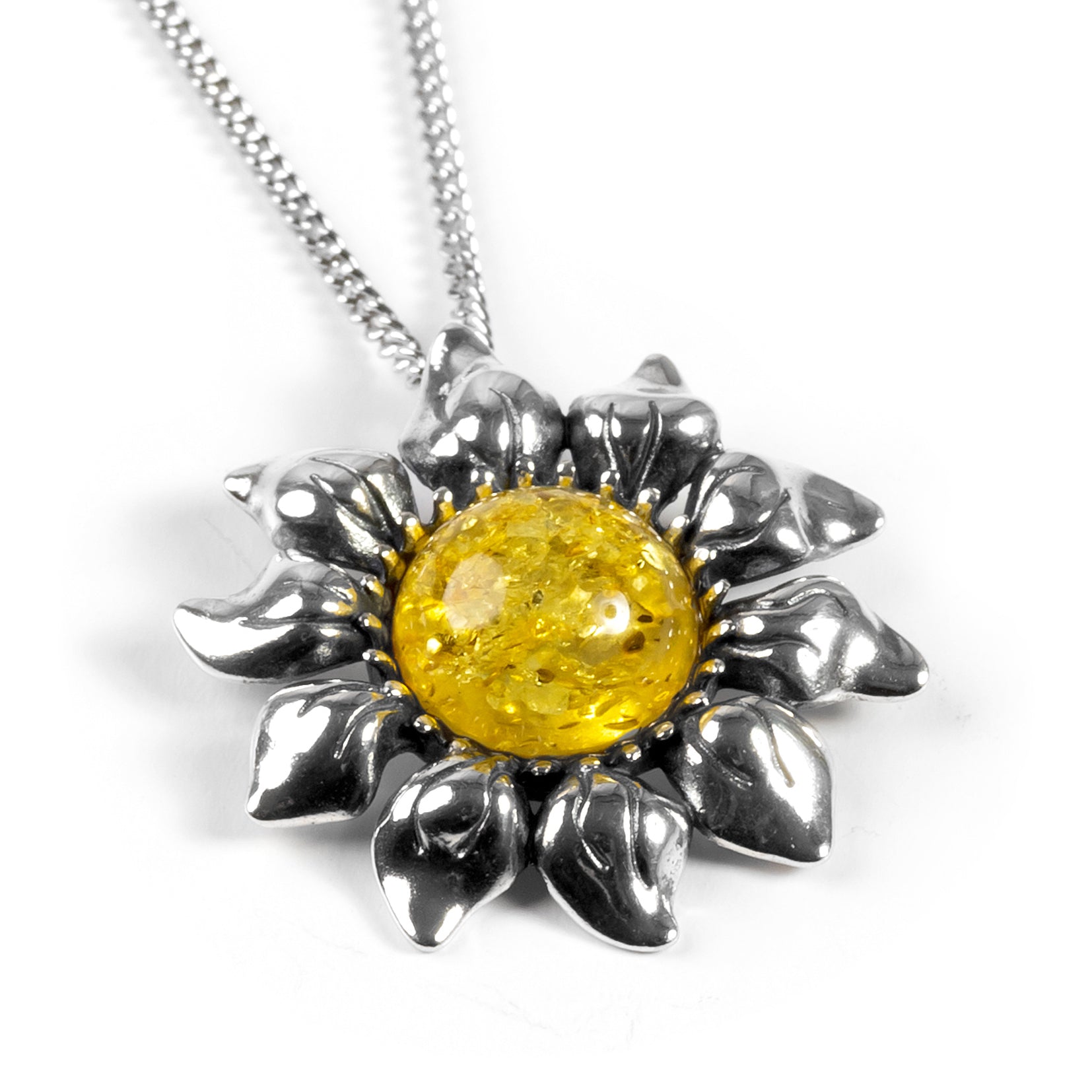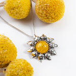 Get summery vibes all year round with our Silver and Yellow Amber Blooming Sunflower Necklace.