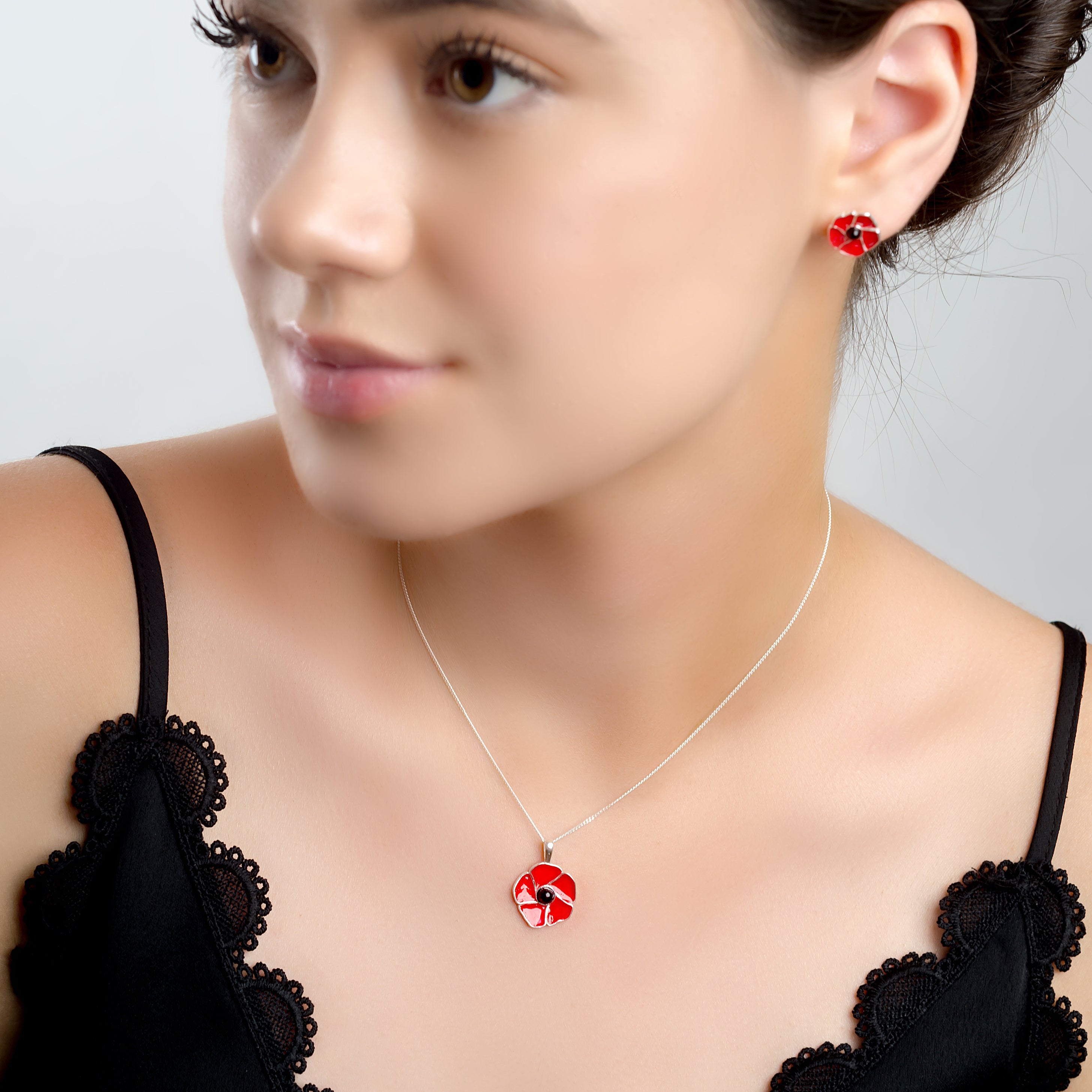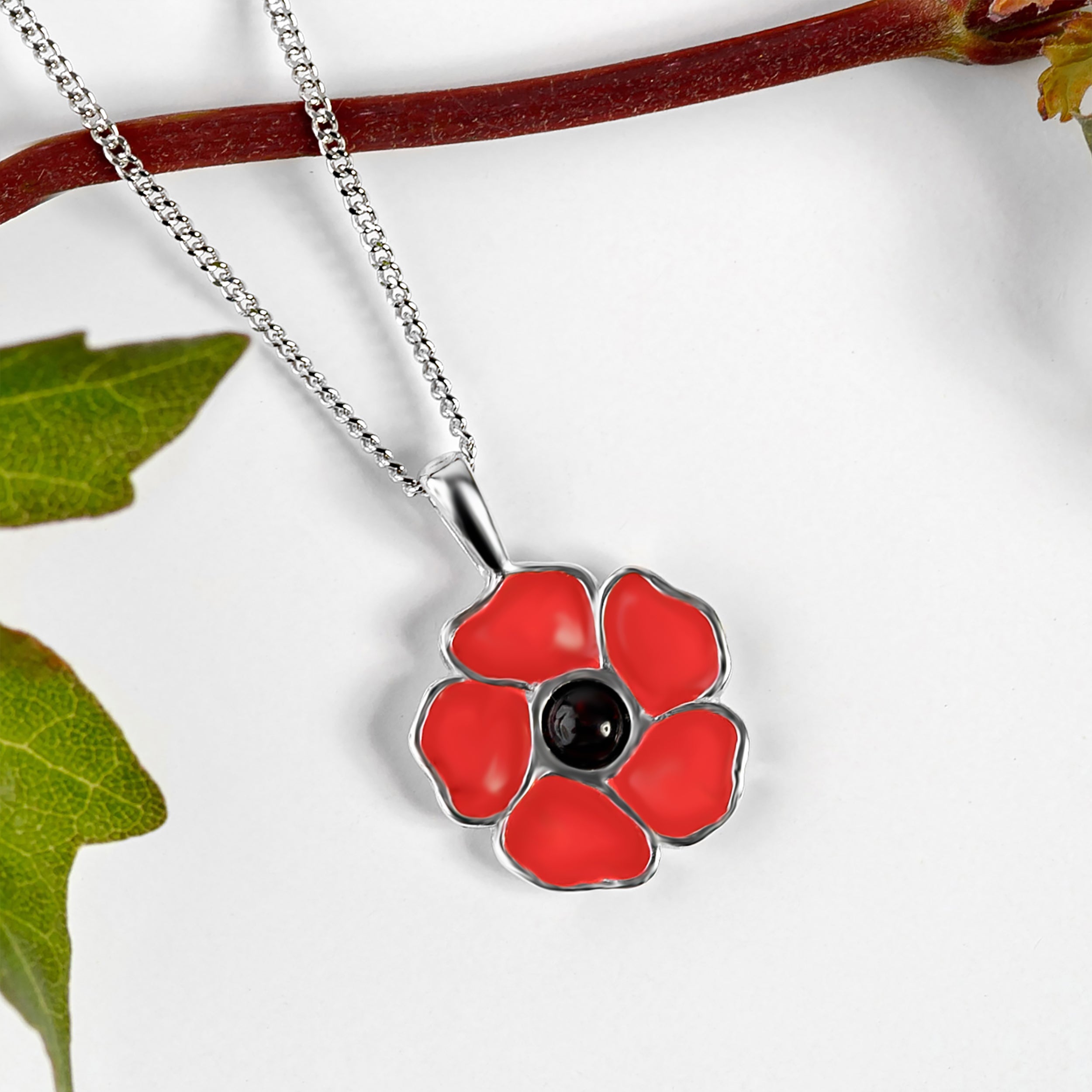 A symbol of remembrance for all victims of war times, our Silver and Amber Poppy Necklace makes a wonderful keepsake.