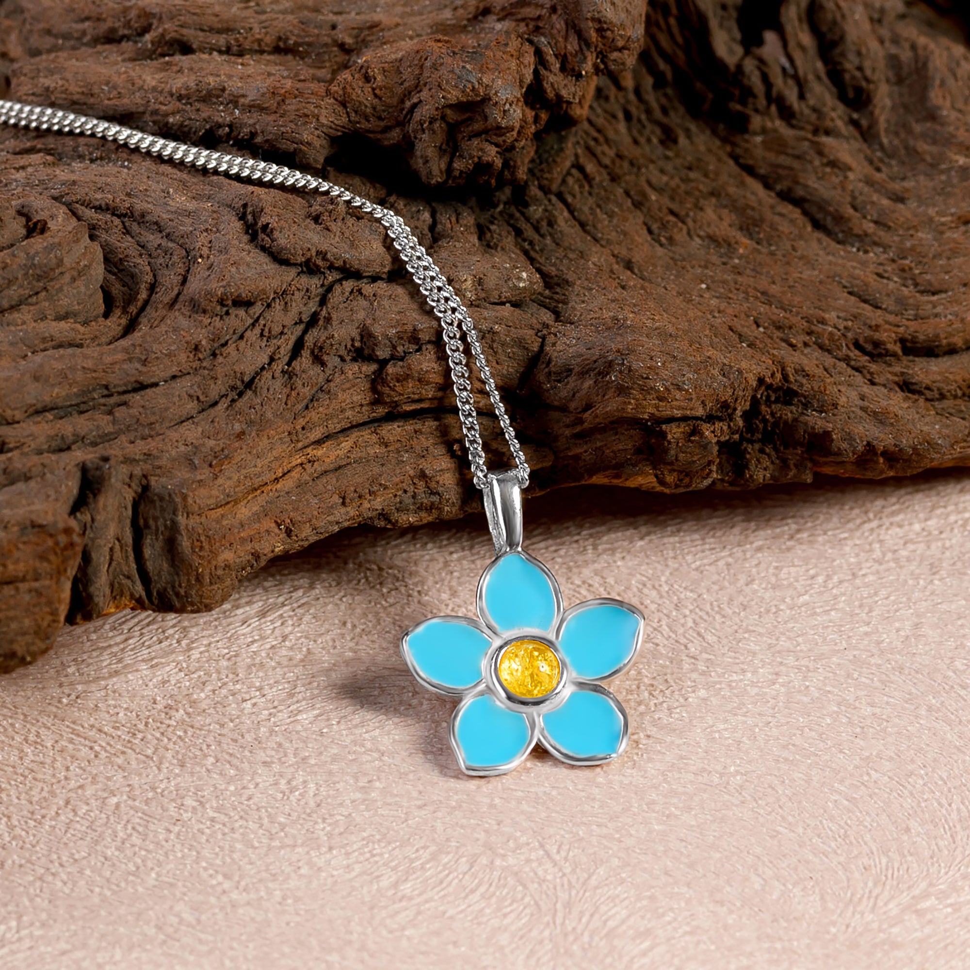 Our Silver Hand Painted Forget Me Not Necklace is a true symbol of love and remembrance.