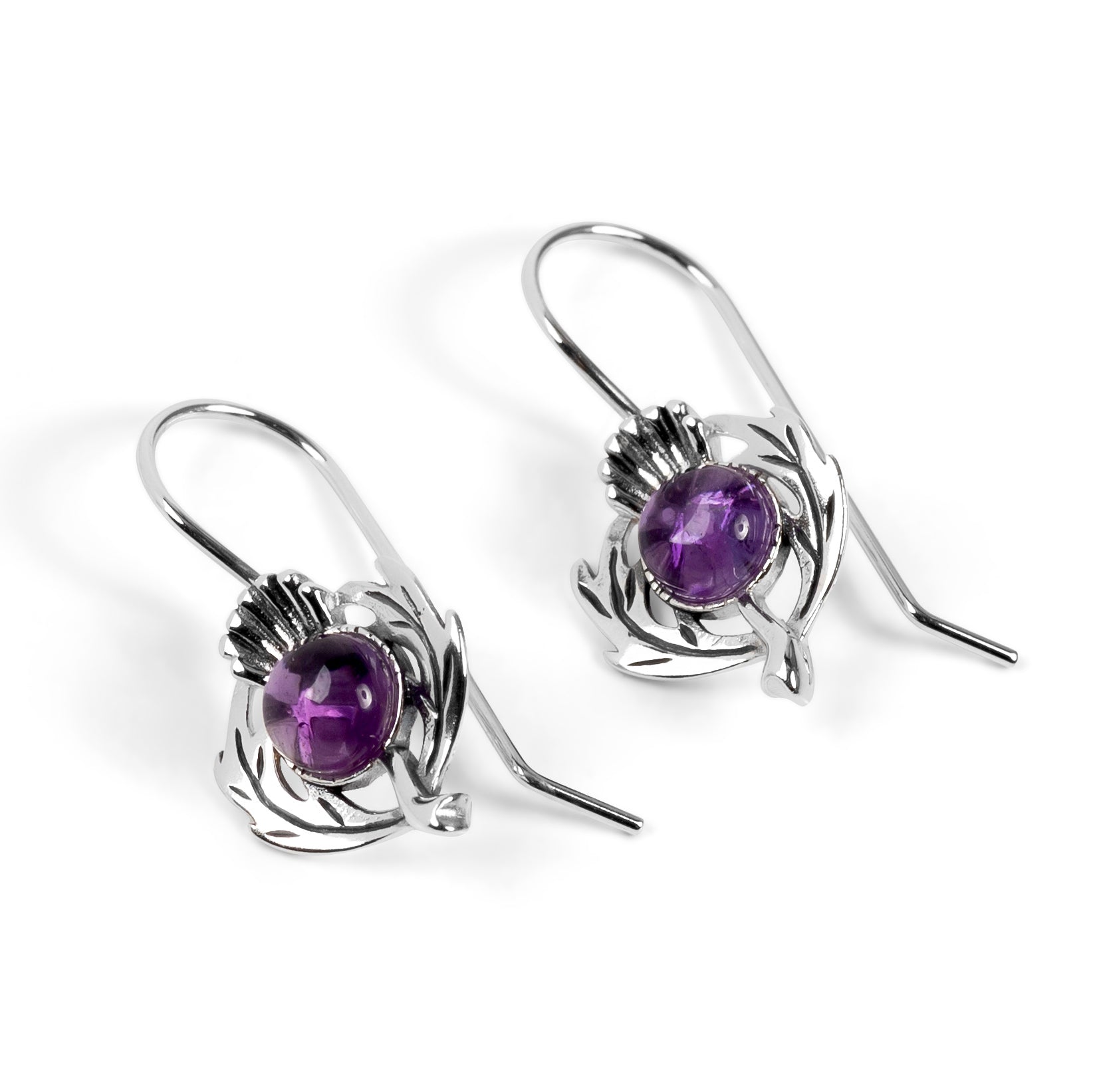 Scottish Thistle Hook Earrings in Silver and Amethyst
