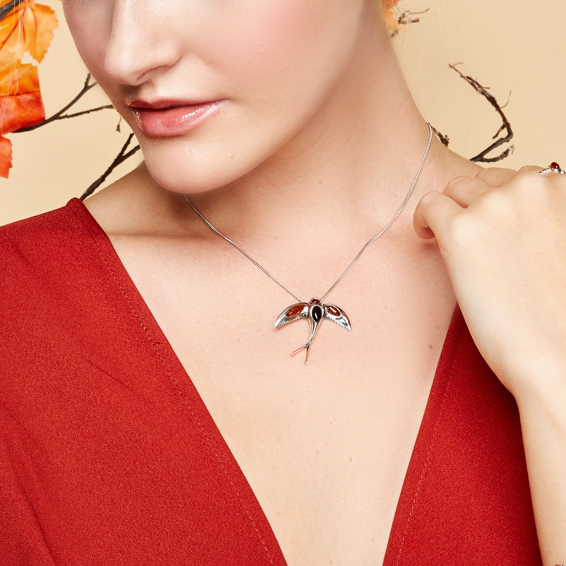 Imitating this bird in flight, our Silver Swooping Swallow Necklace is perfect for any nature lover.
