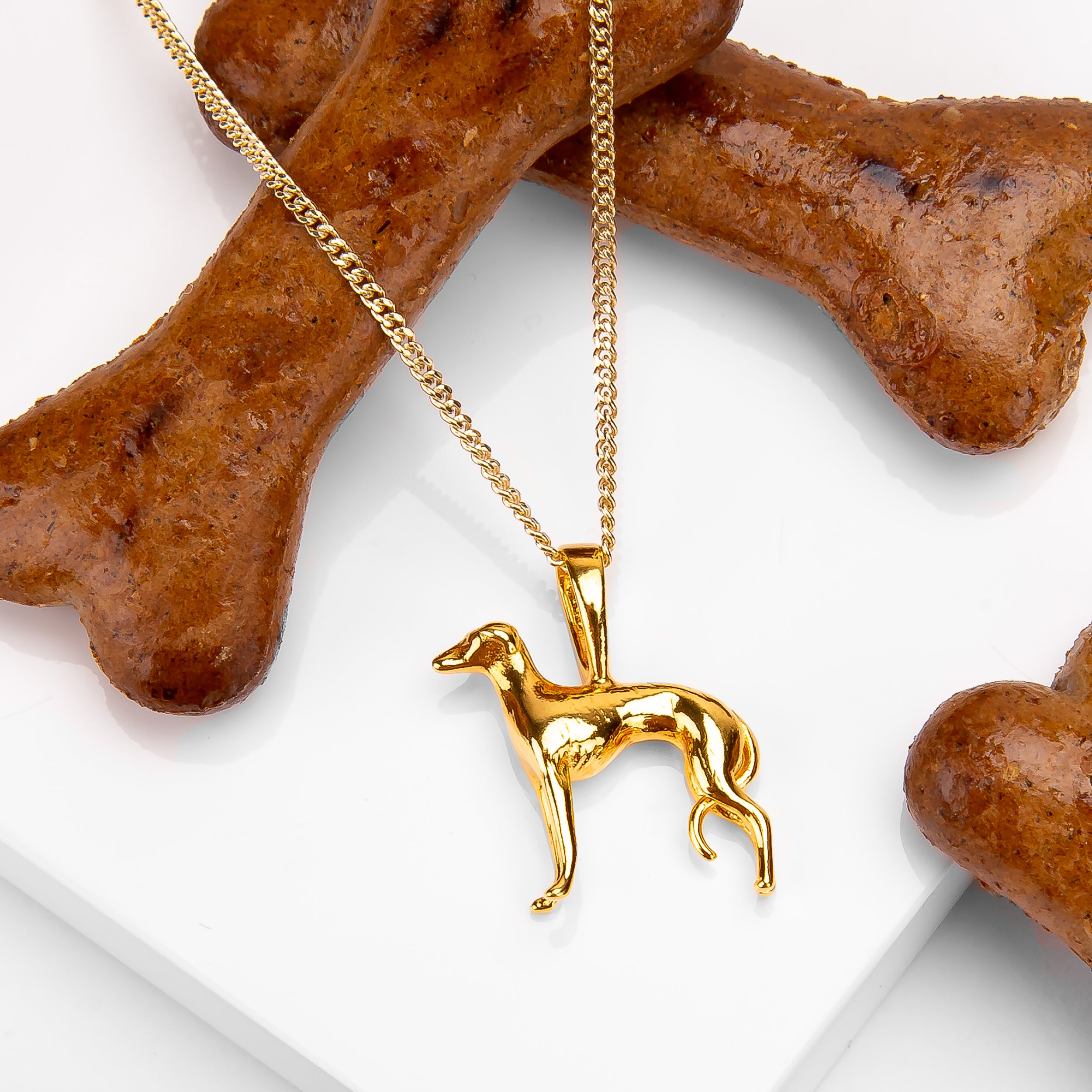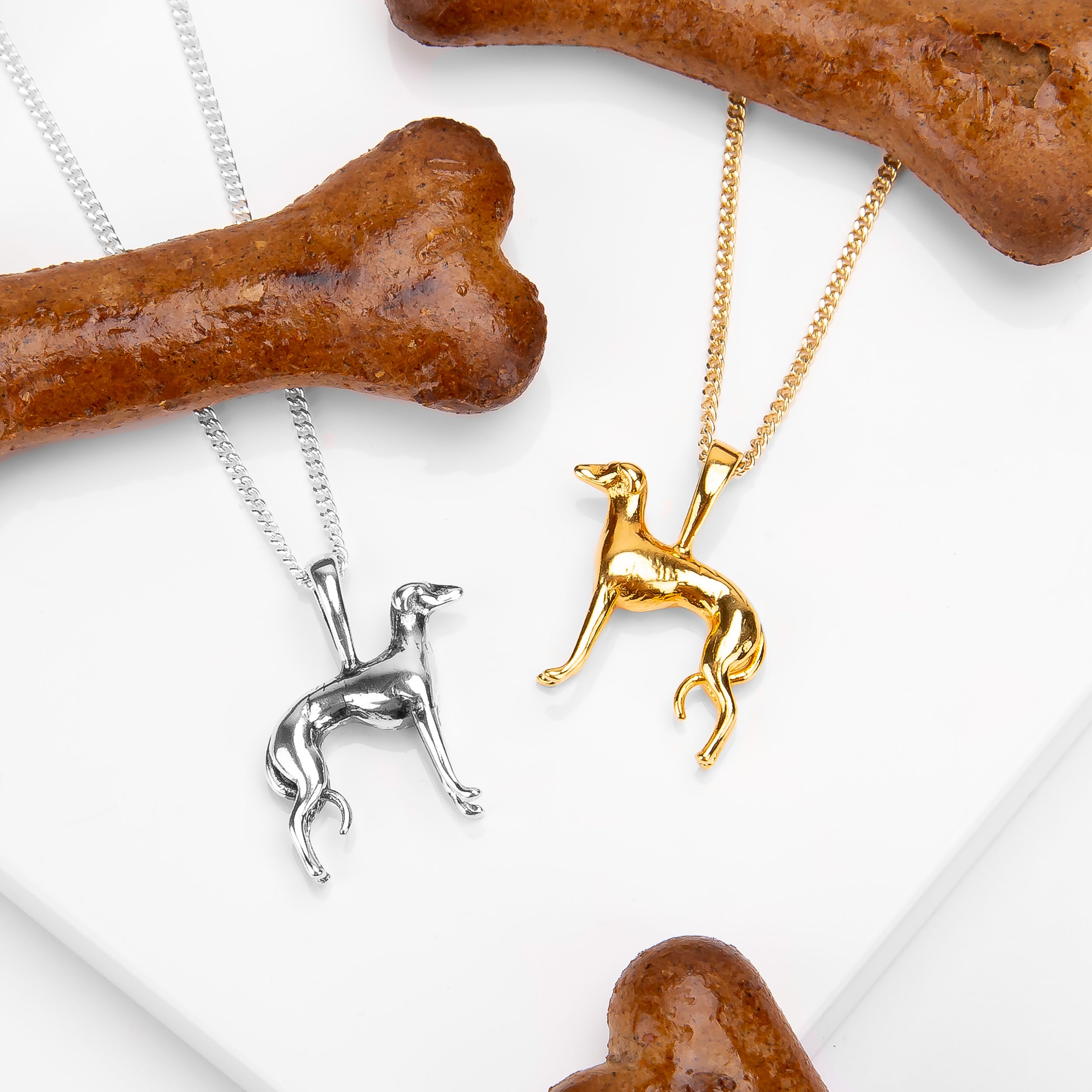 A must have for any owner of this iconic breed-the Silver with 24ct Gold Large Greyhound / Whippet Necklace.