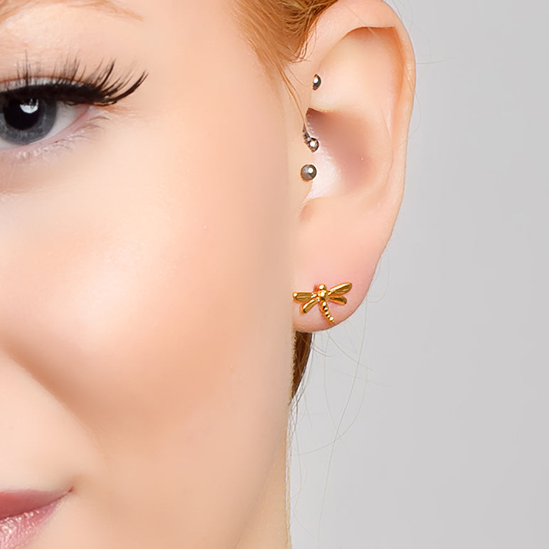 Celebrate with world around us with our Miniature Silver with 24ct Gold Dragonfly Stud Earrings.
