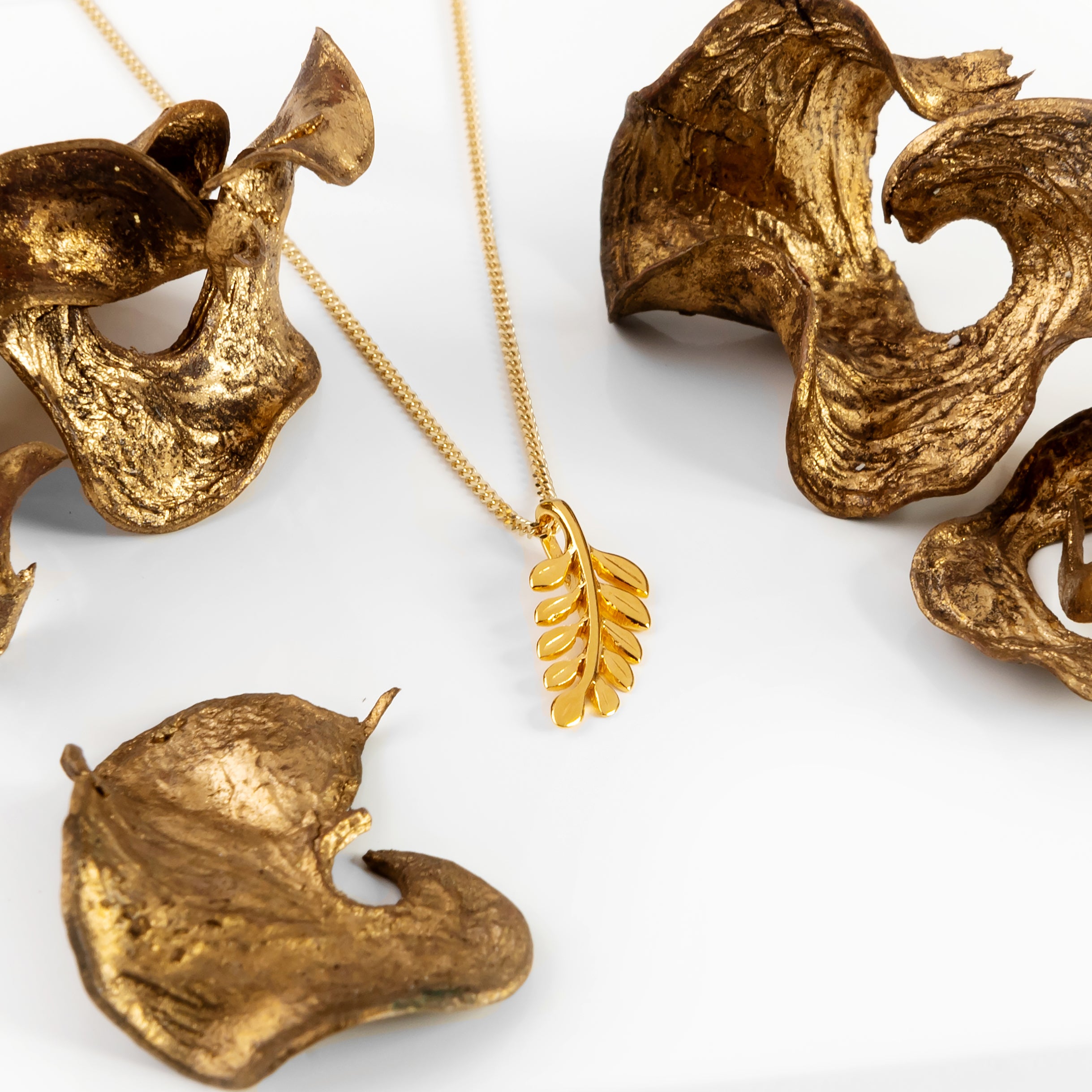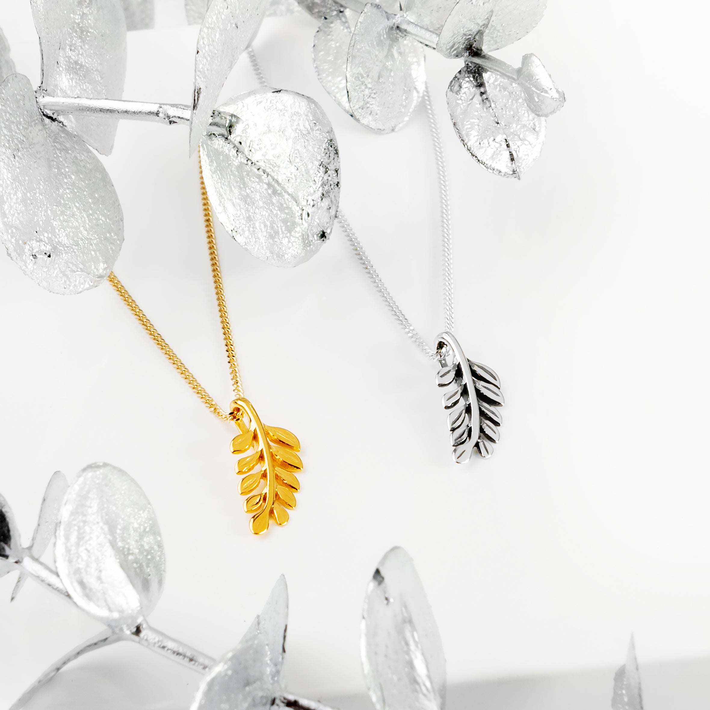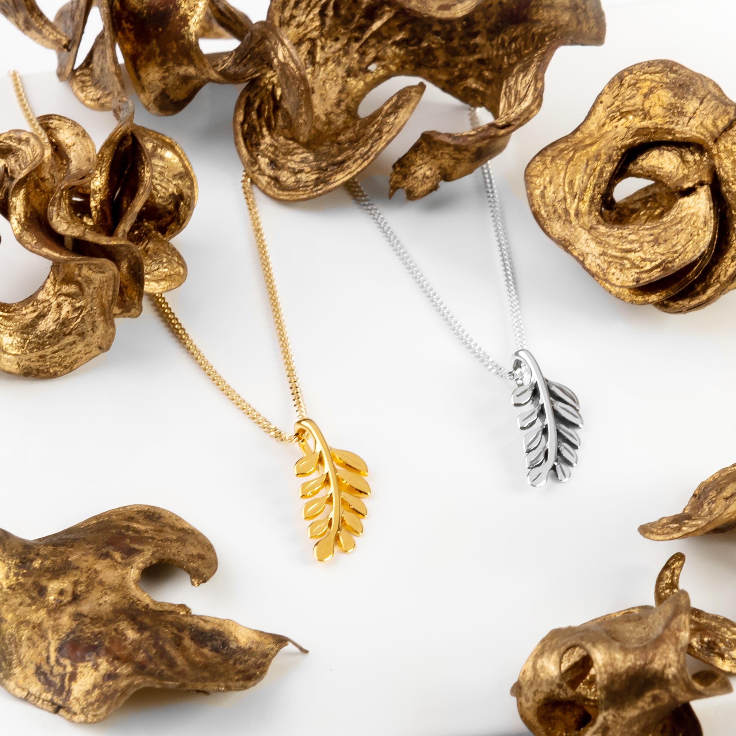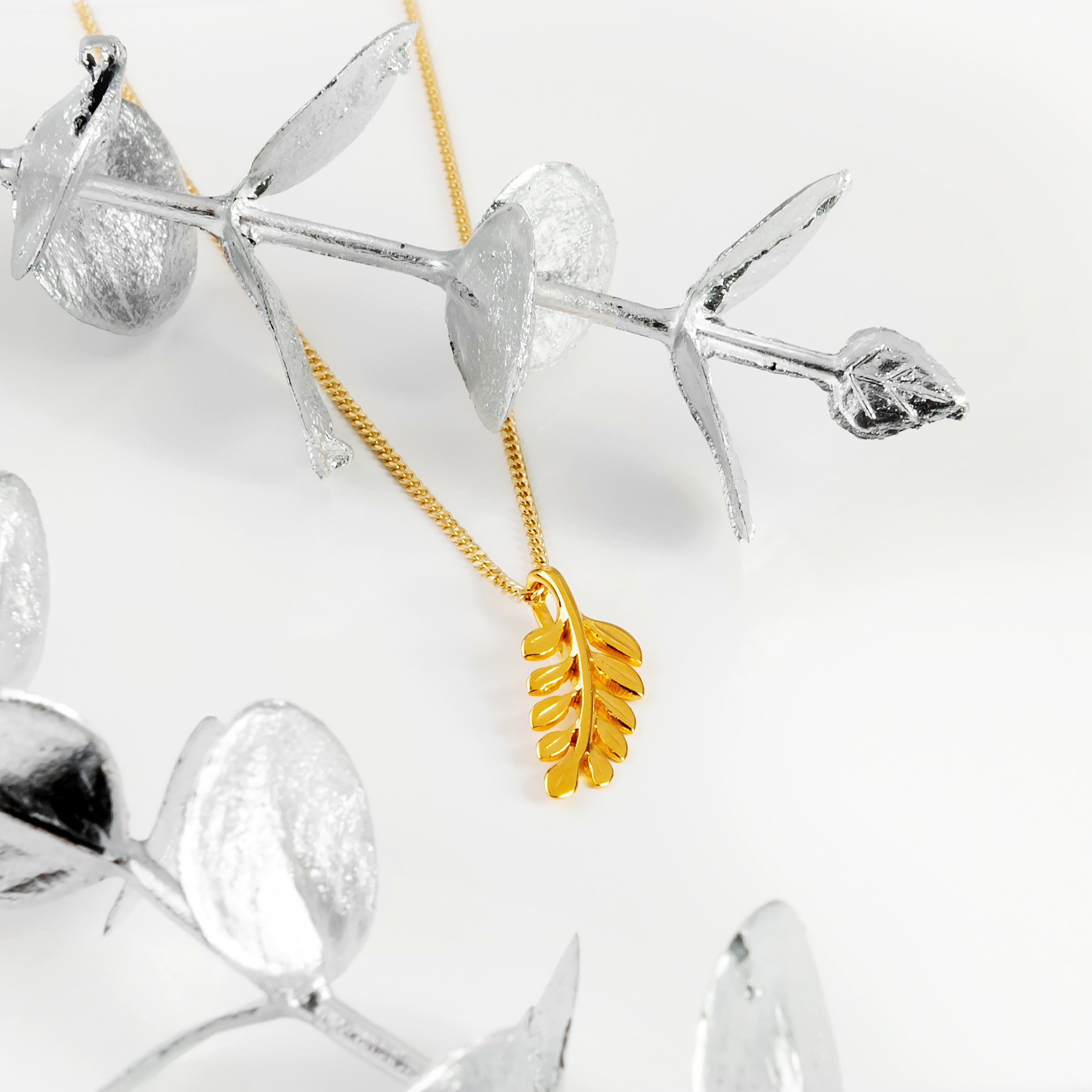 Miniature Royal Fern Leaf Necklace in Silver with 24ct Gold