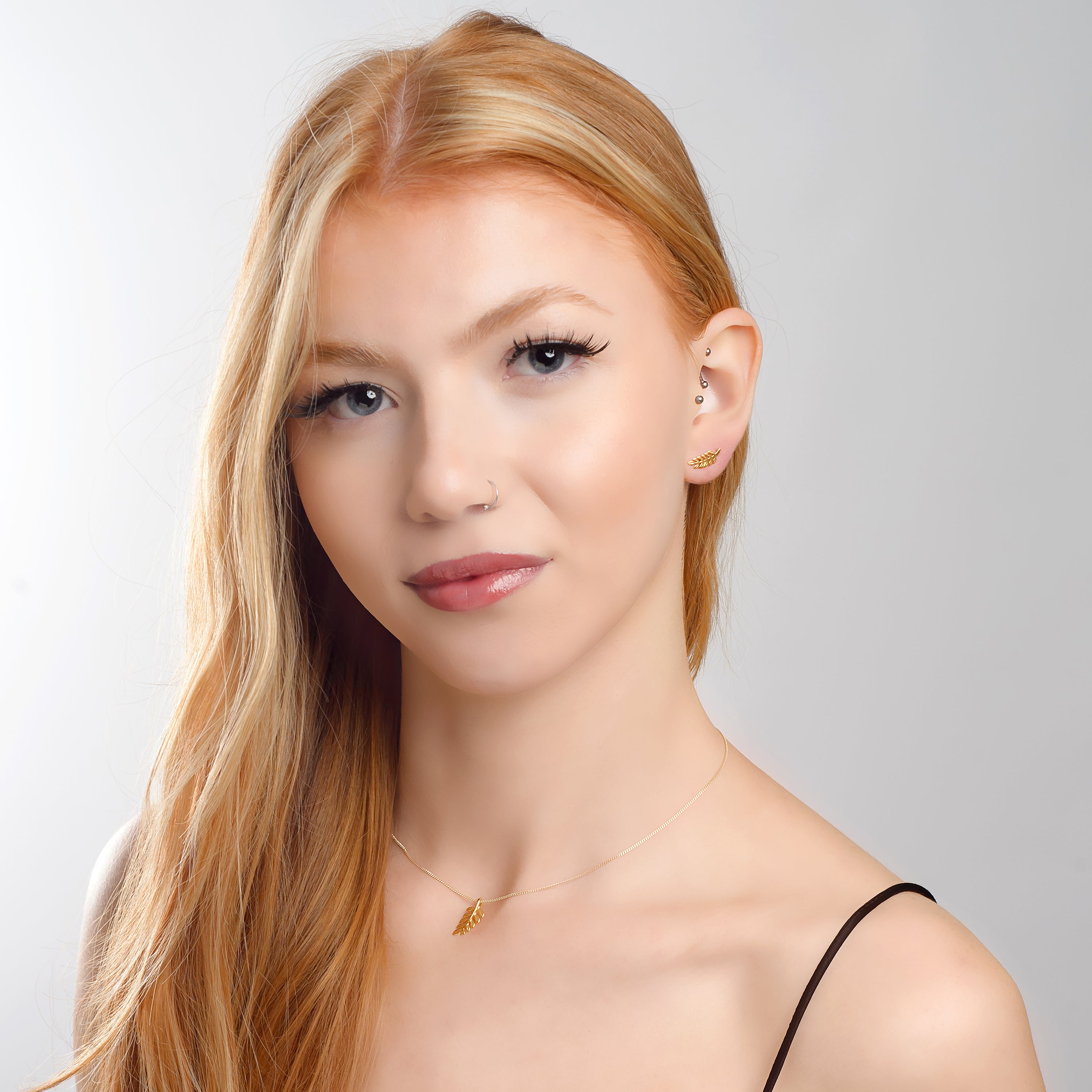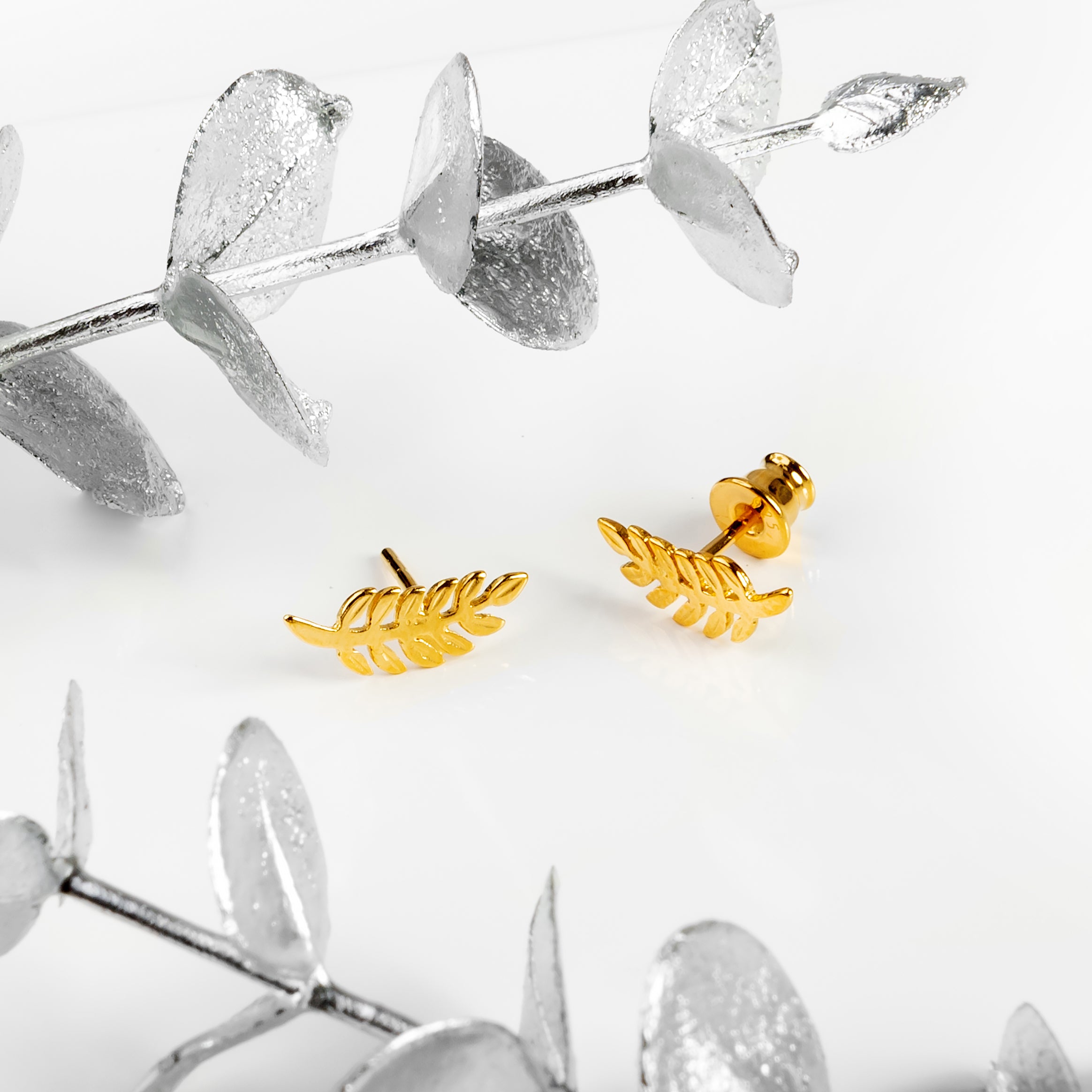 Miniature Royal Fern Leaf Stud Earrings in Silver with 24ct Gold