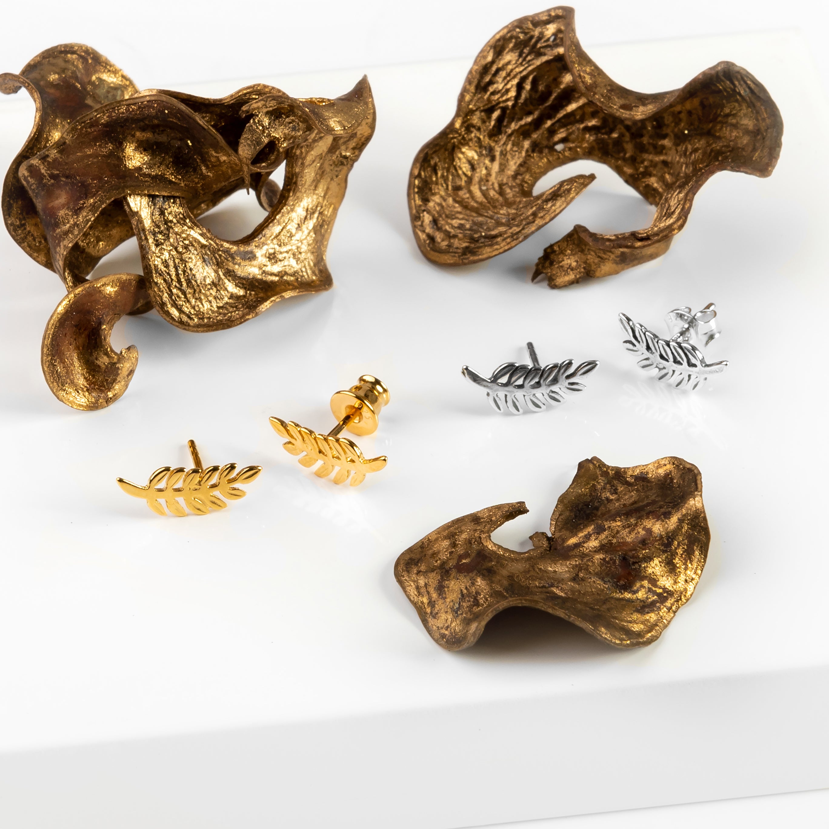 Elegant and subtle Silver with 24ct Gold Royal Fern Stud Earrings.