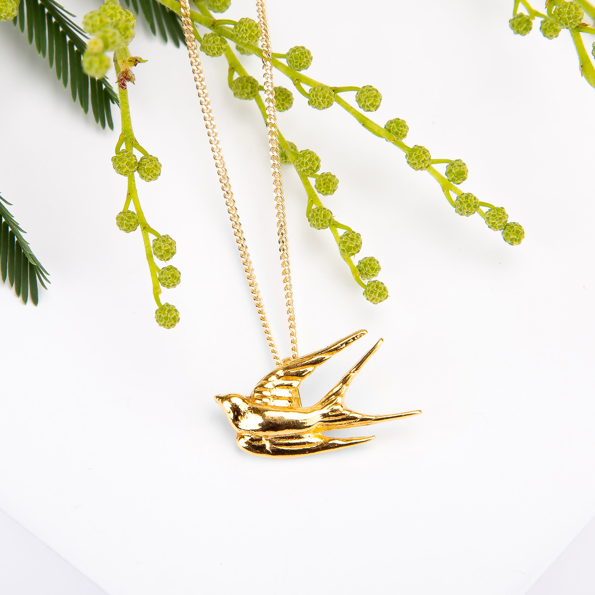 Imitating this bird in flight, our Miniature Silver with 24ct Gold Swooping Swallow Necklace is perfect for any nature lover.