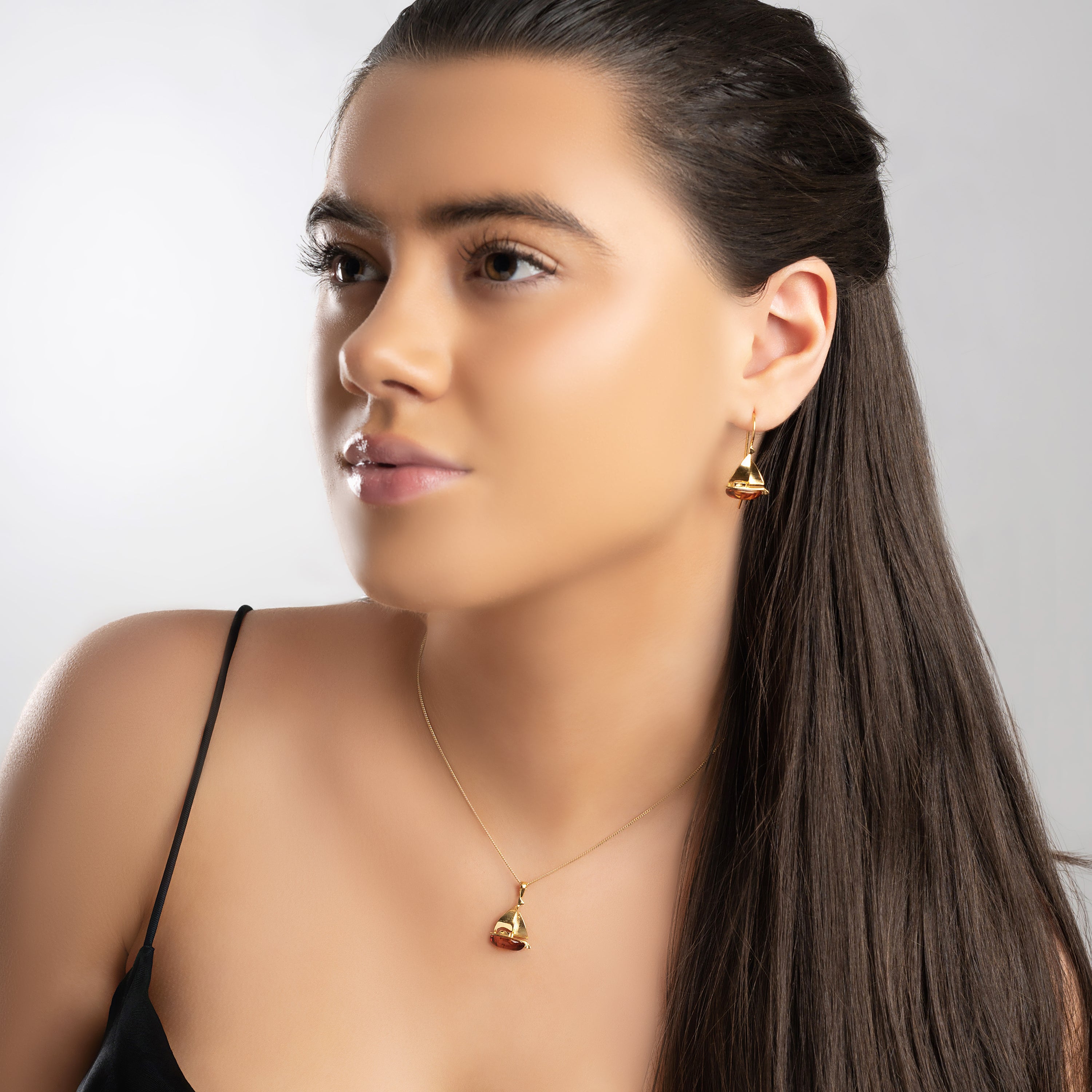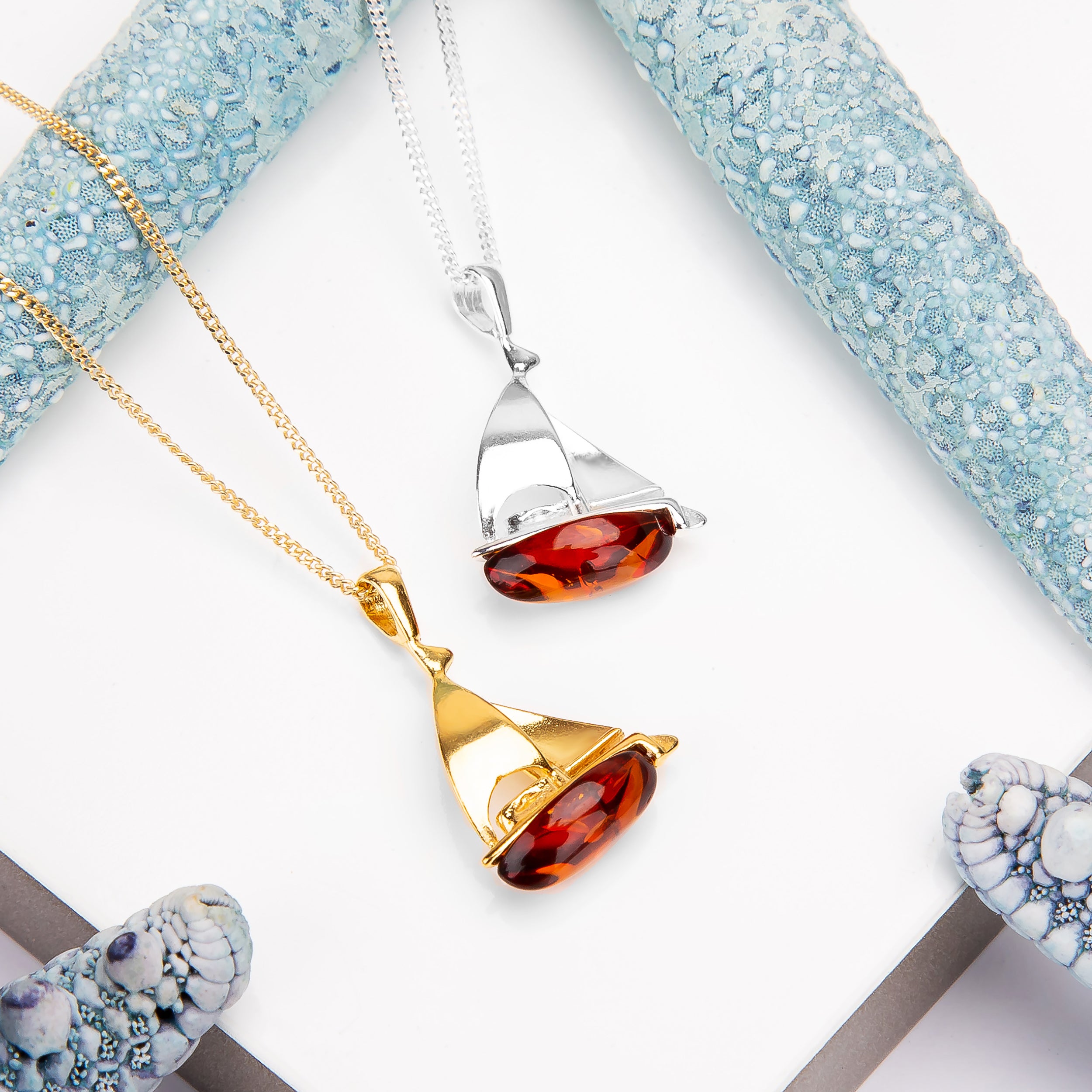 This Amber & Silver with 24ct Gold Sailboat Necklace is a perfect present for yacht club members and all who love ocean and sailing.