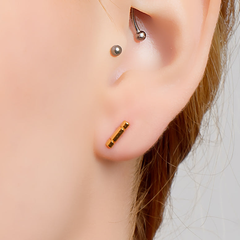 Simple Bar Stud Earrings in Silver with 24ct Gold