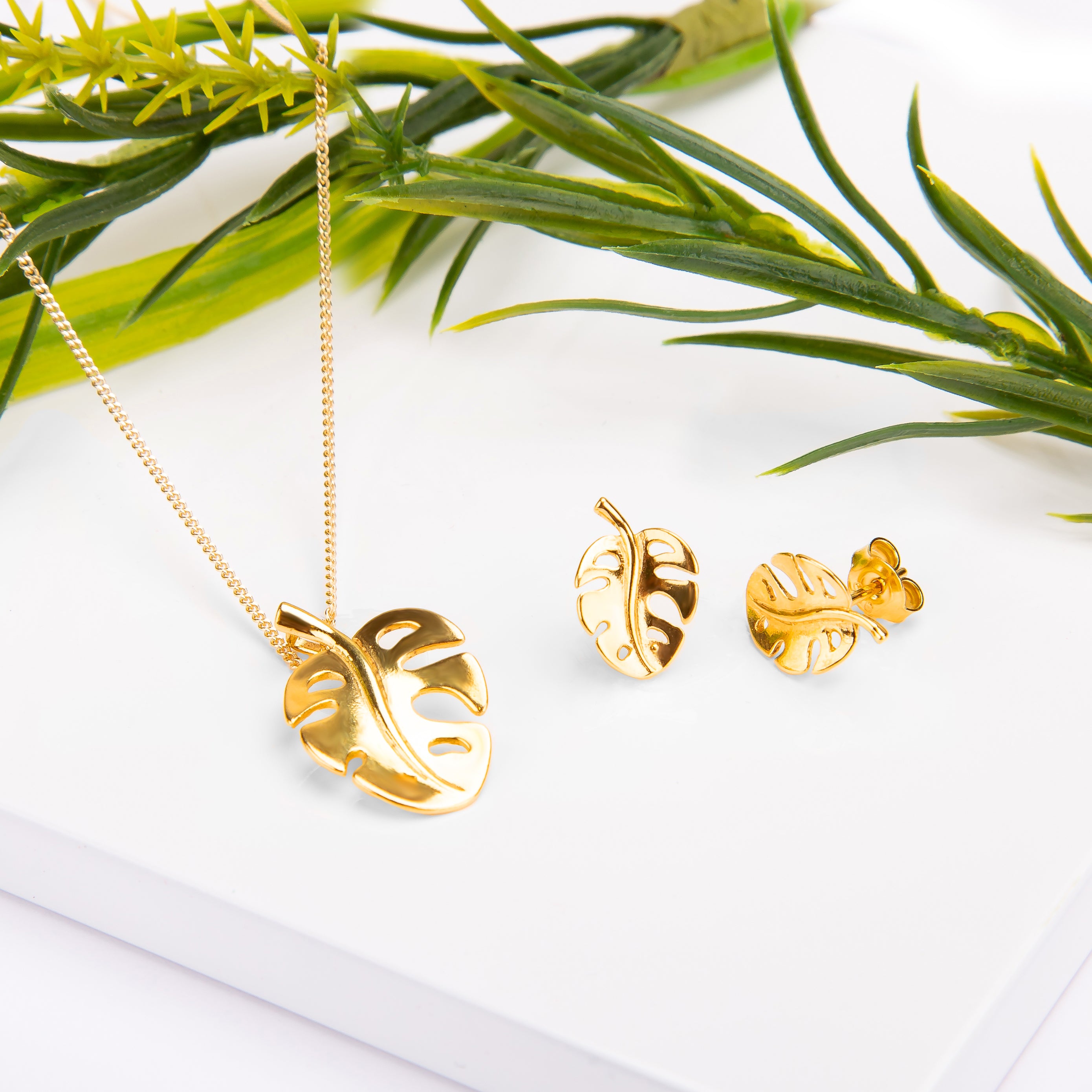 Crafted in 925 Sterling Silver with 24ct Gold plating, each earring represents a typical Monstera or more commonly known as the 'cheese plant'. Beautifully detailed and comes complete with solid stem posts and butterfly backing.