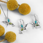 Fly high and be free with our Silver, Green Amber and Turquoise Hummingbird Necklace.