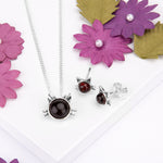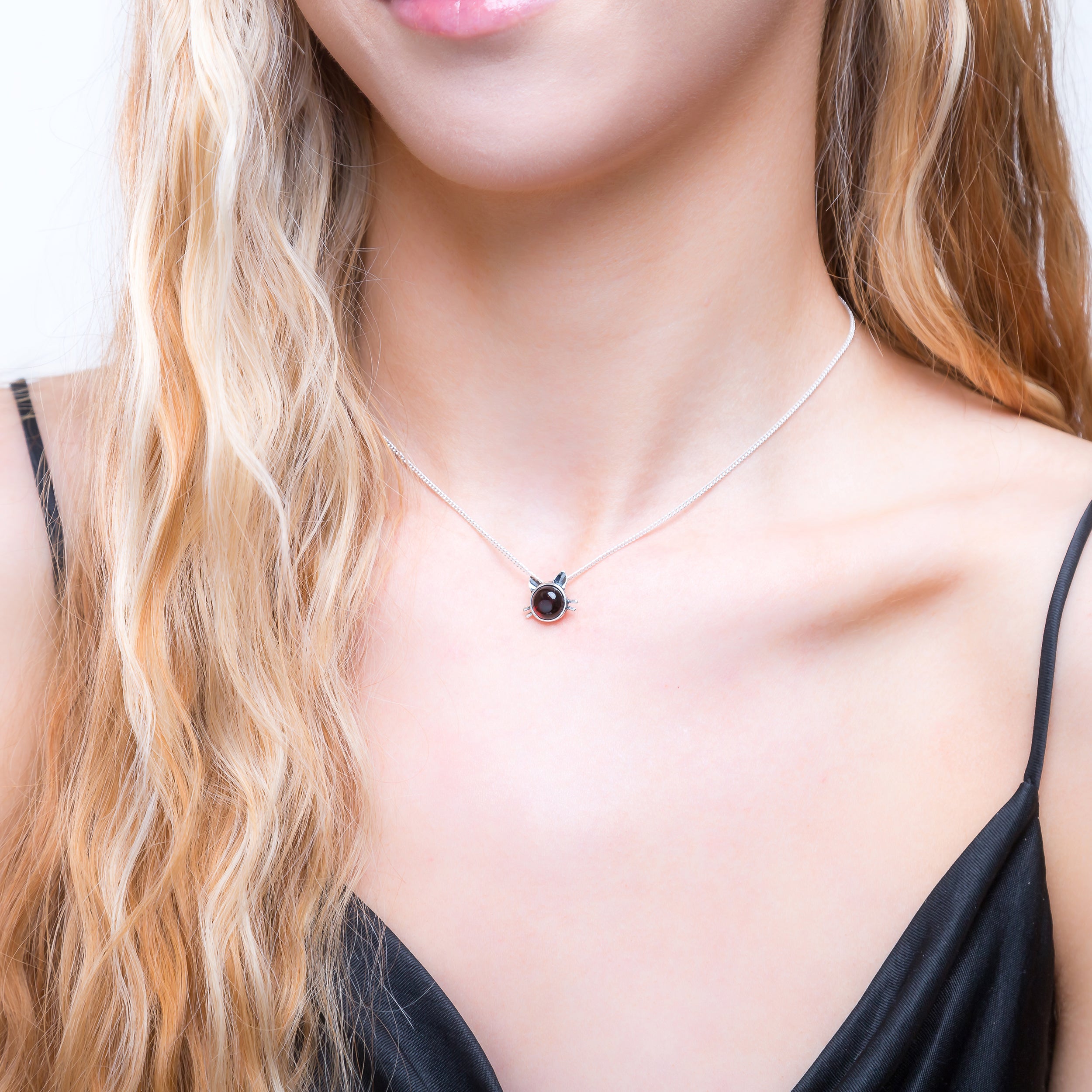 Cute Cat Face Necklace in Silver and Cherry Amber