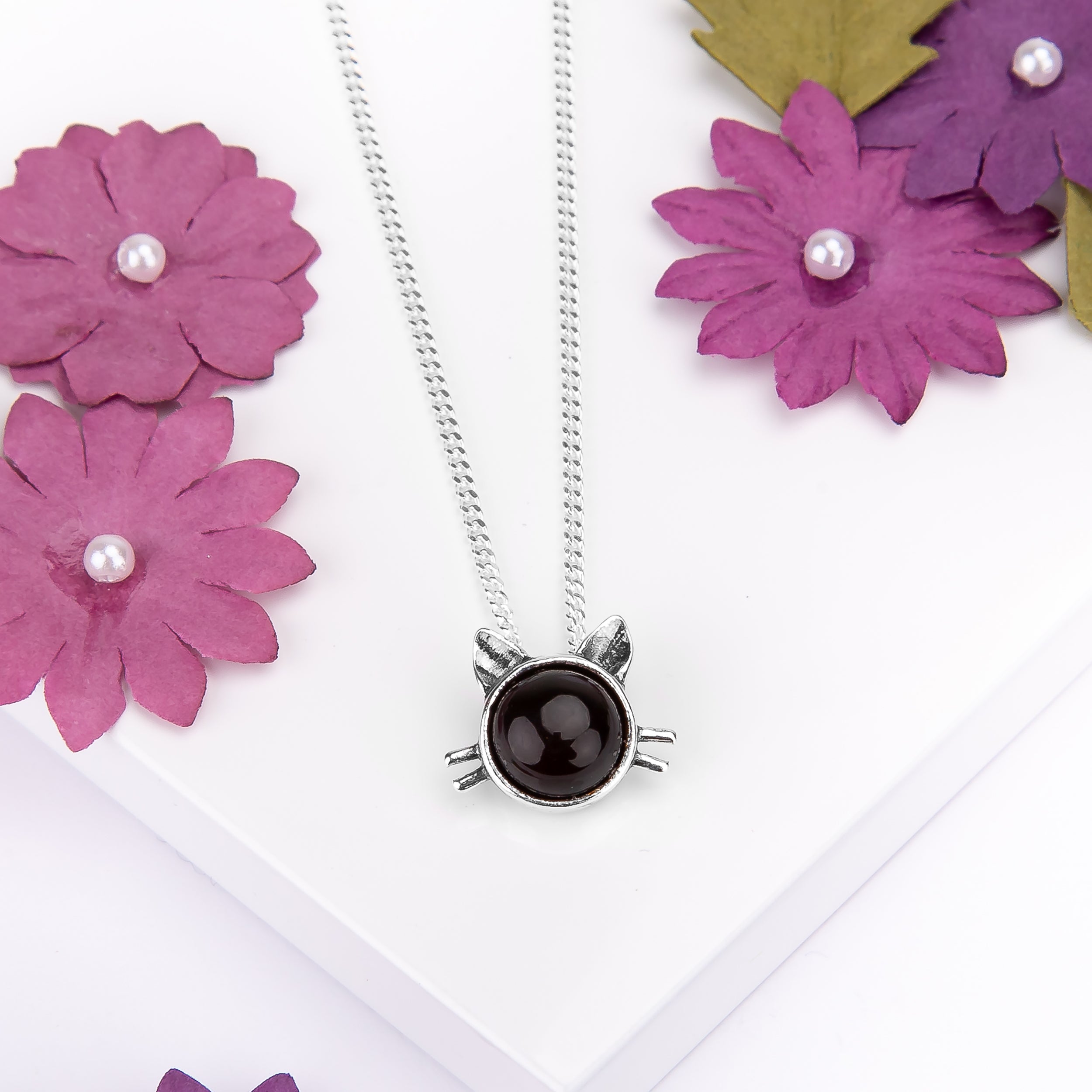 Keep your cat companion close to your heart with our Silver and Cherry Amber Cute Cat Face Necklace.