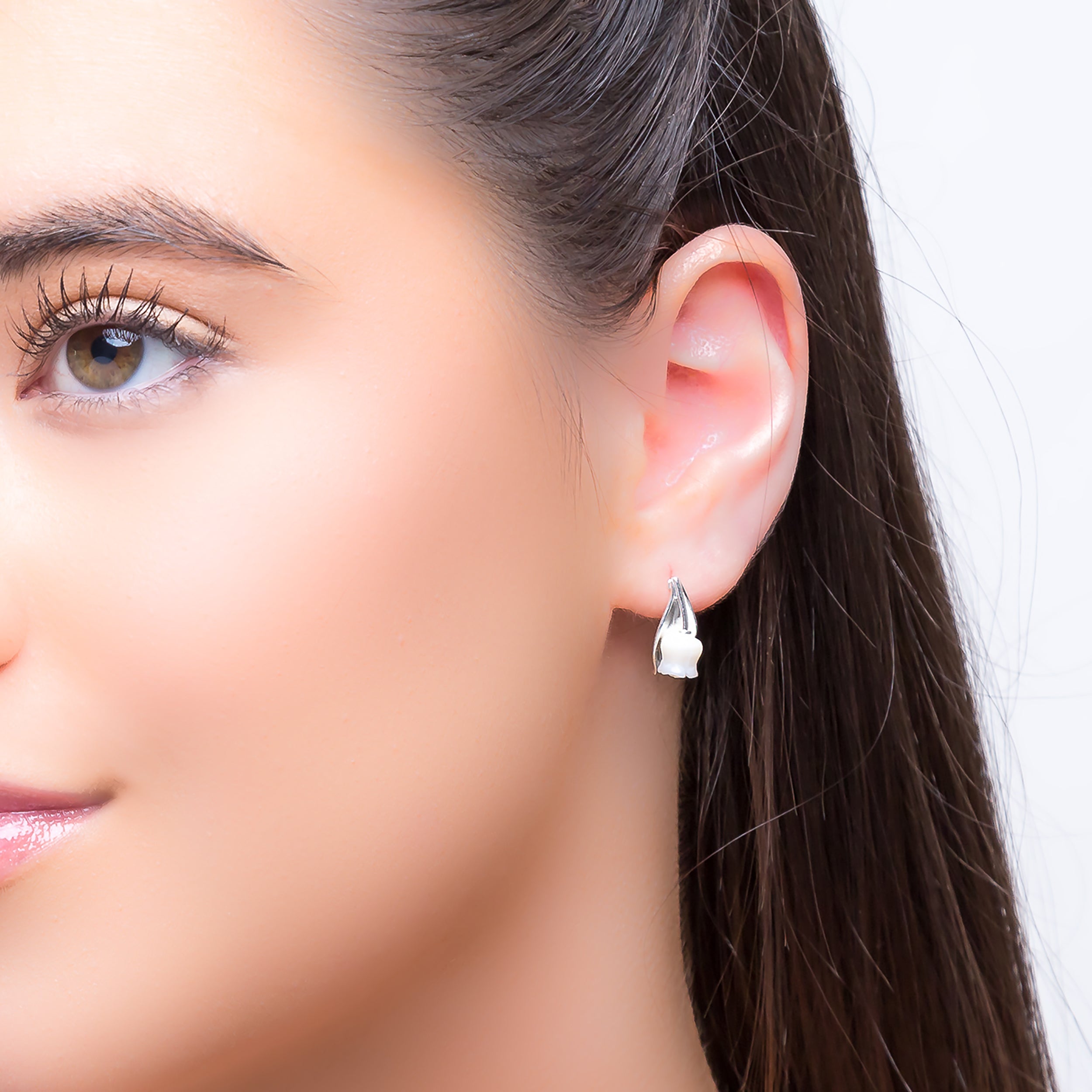 Lily of the Valley Flower Stud Earrings in Silver & Mother of Pearl