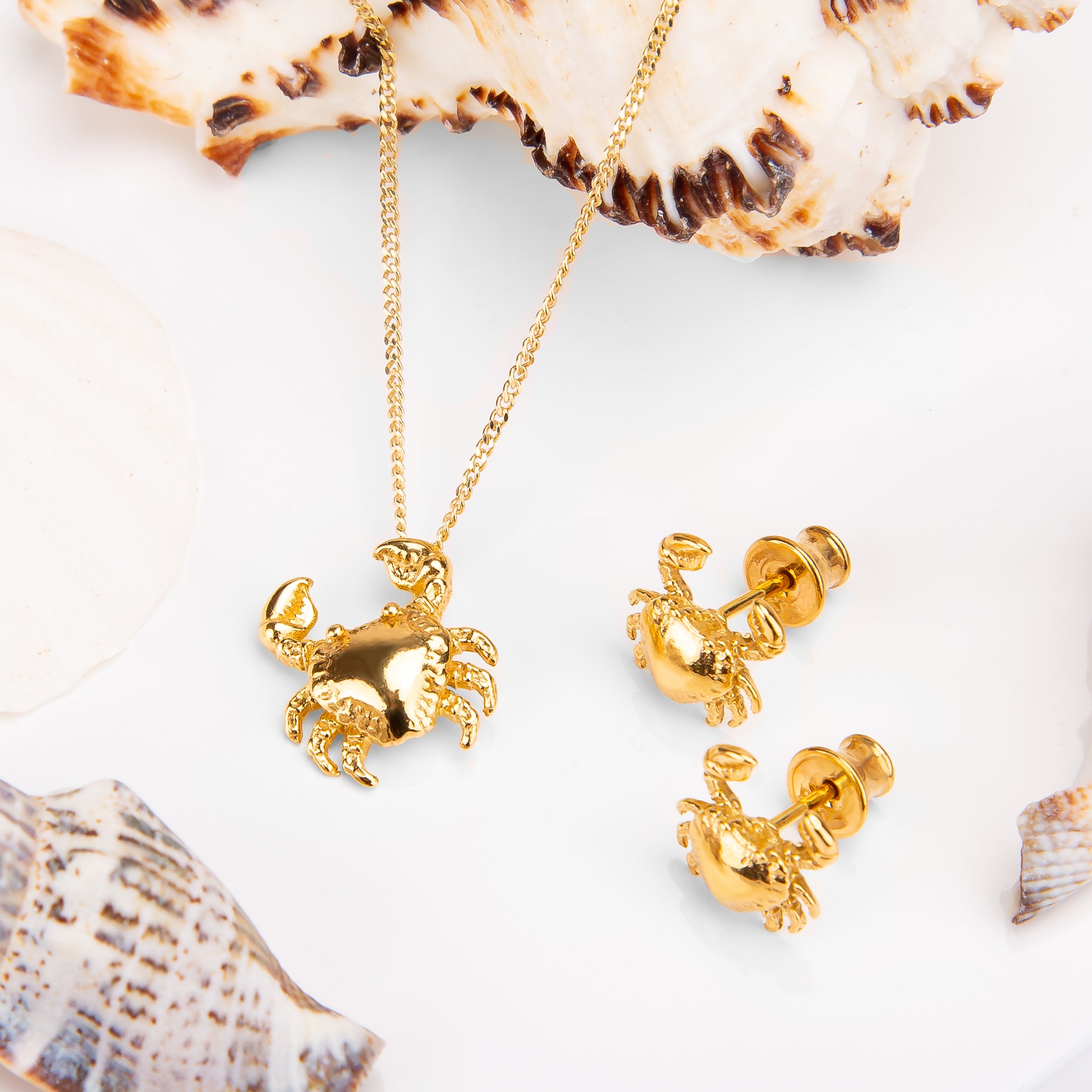 Crafted in 925 silver with 24ct Gold plating, each earring is highly detailed with a flat shell, 6 legs and 2 claws. Complete with stem and butterfly back, they are easy and secure to wear.
