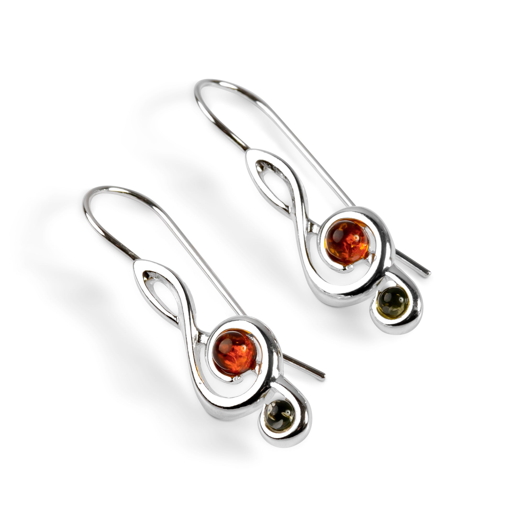 Kingfisher Bird Hook Earrings in Silver, Turquoise and Amber