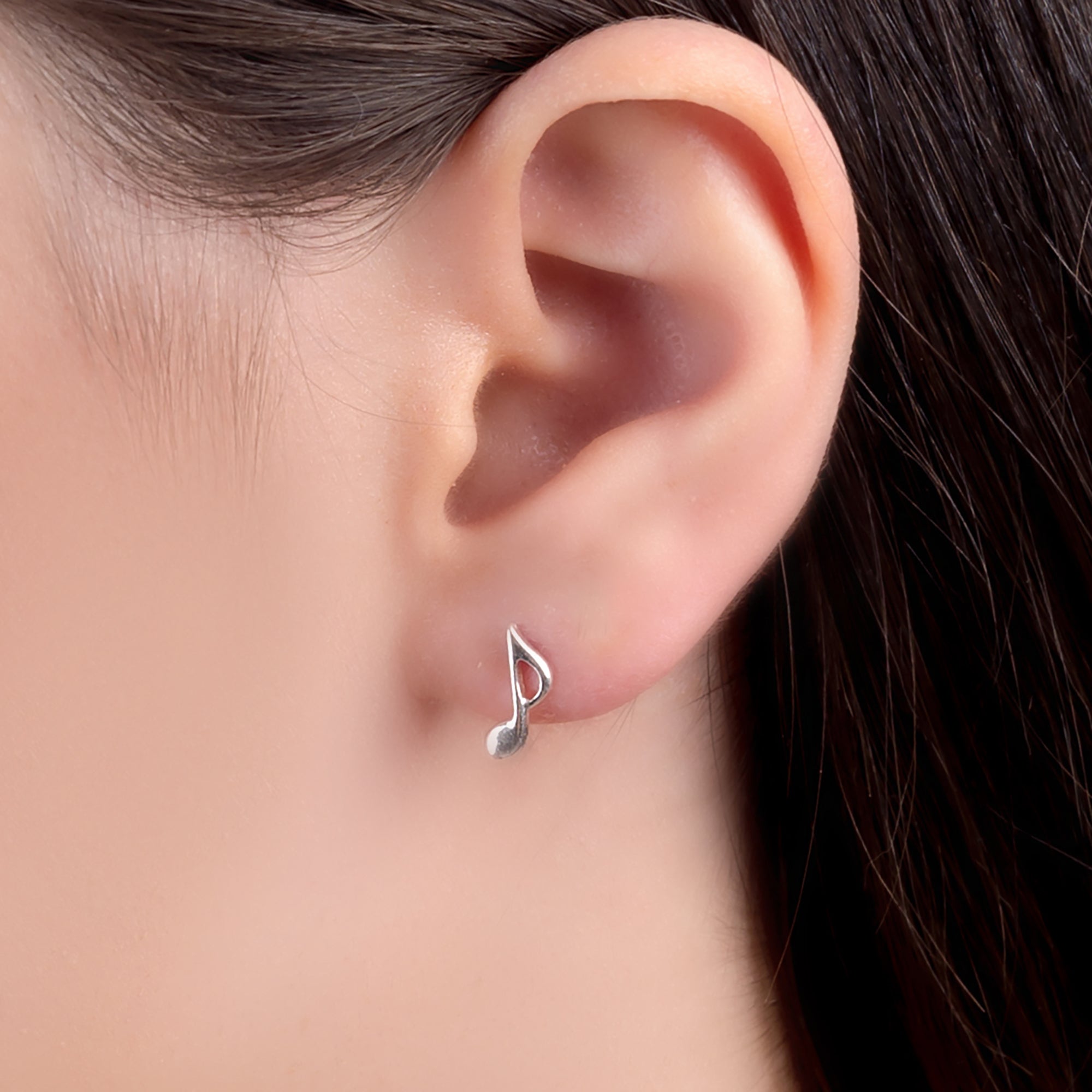 Musical Treble Clef Stud Earrings in Silver with 24ct Gold