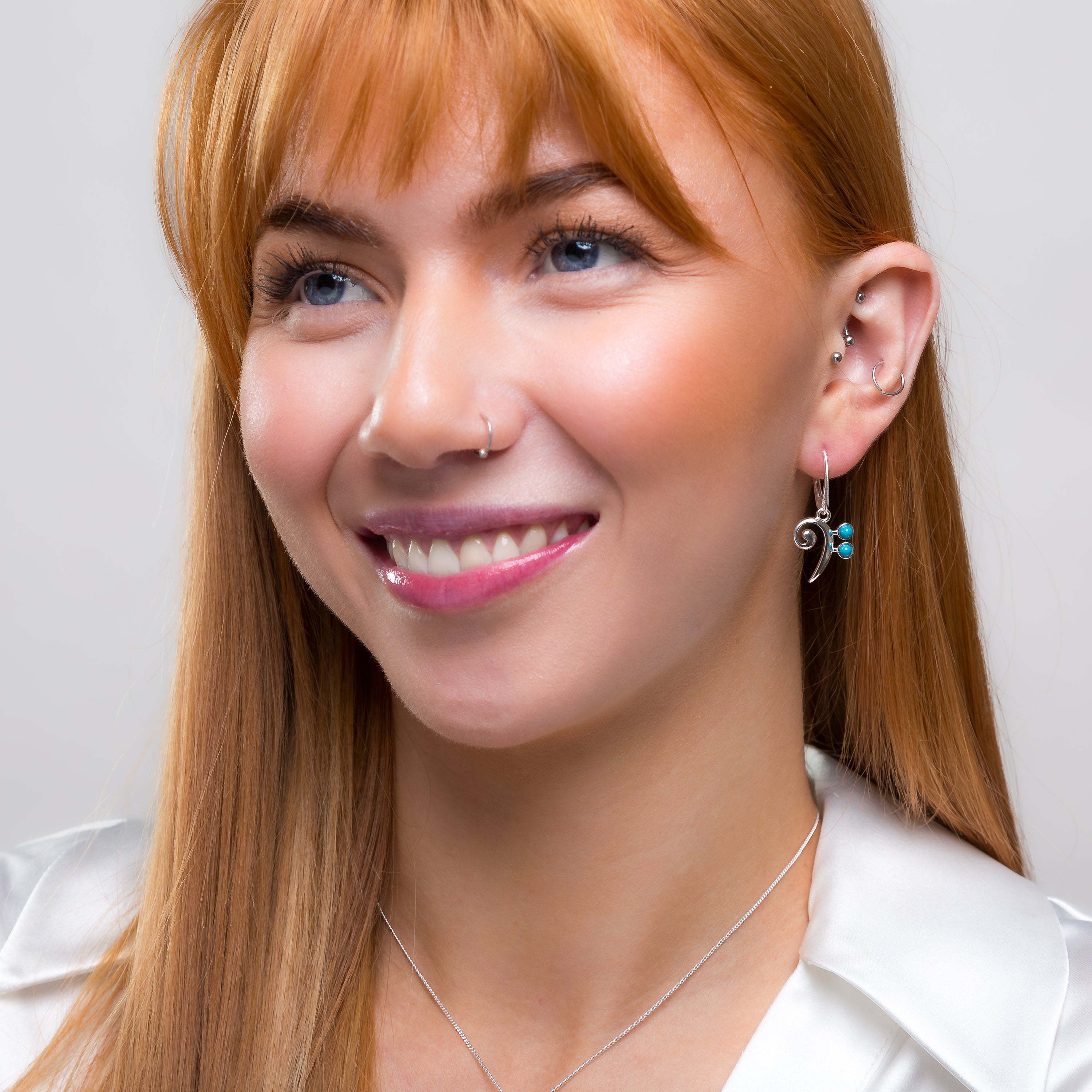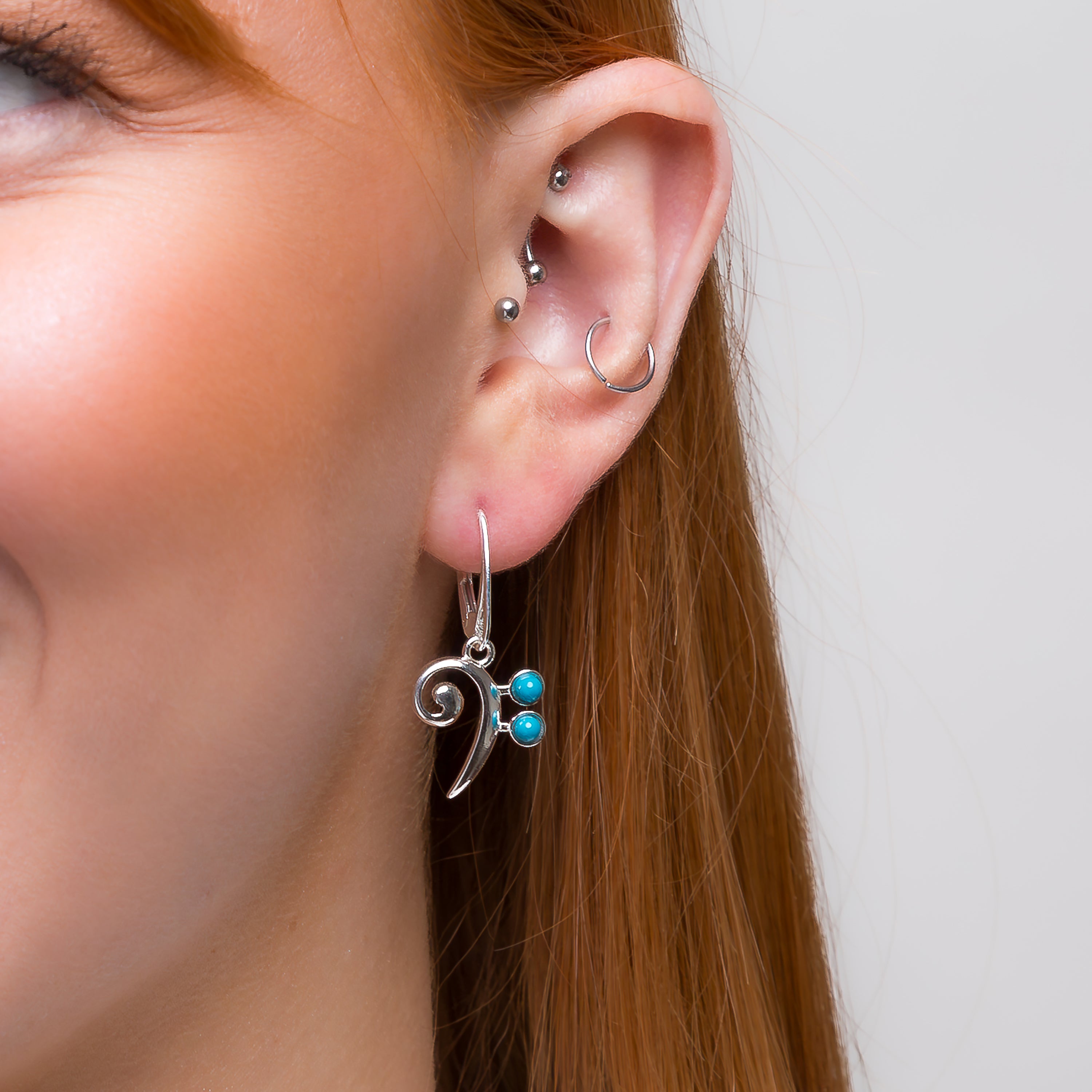 Made with love from 925 silver, each earring is masterfully shaped into a Bass Clef or F Clef and finished with an accent of vibrant Turquoise stones.