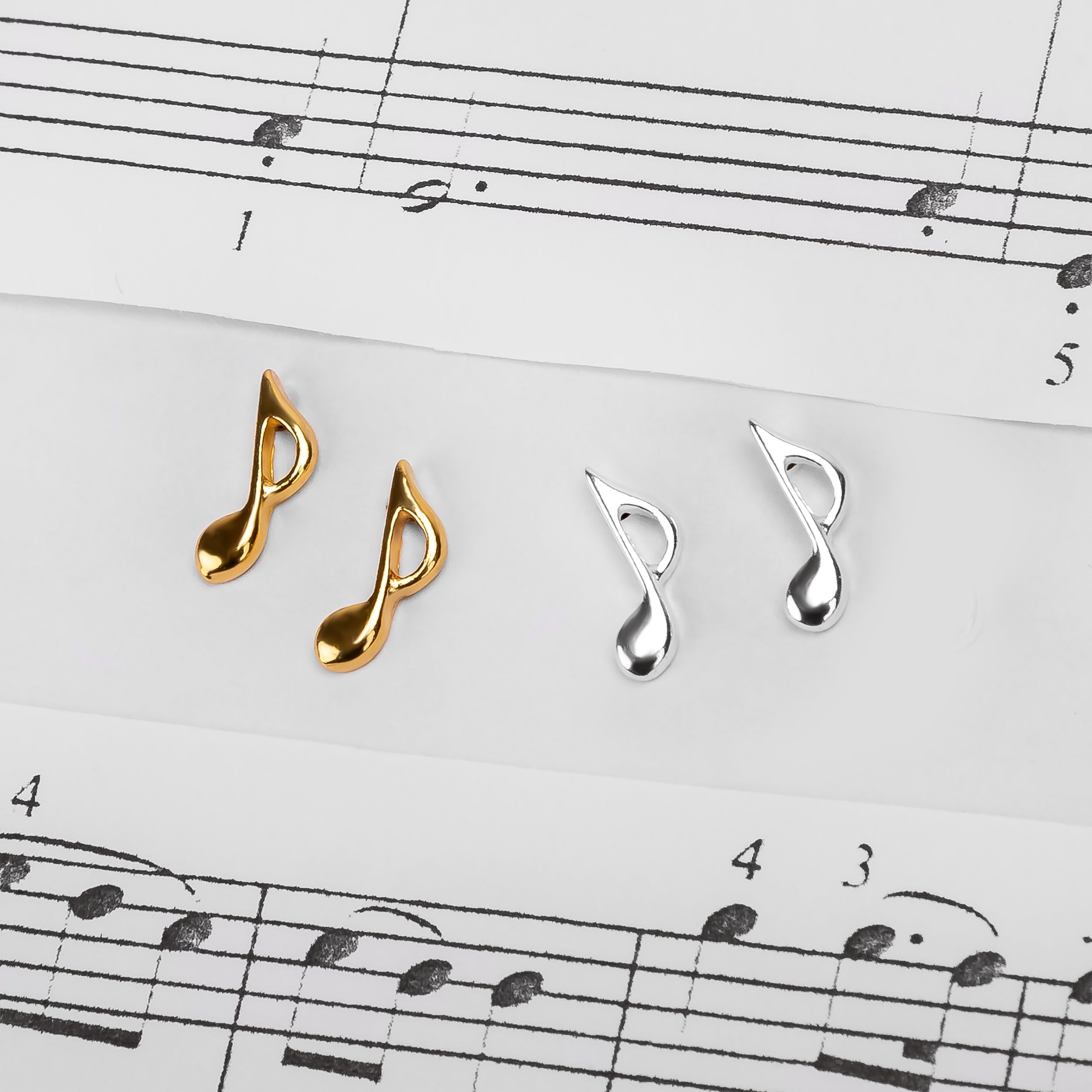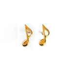 Music Note Stud Earrings in Silver with 24ct Gold