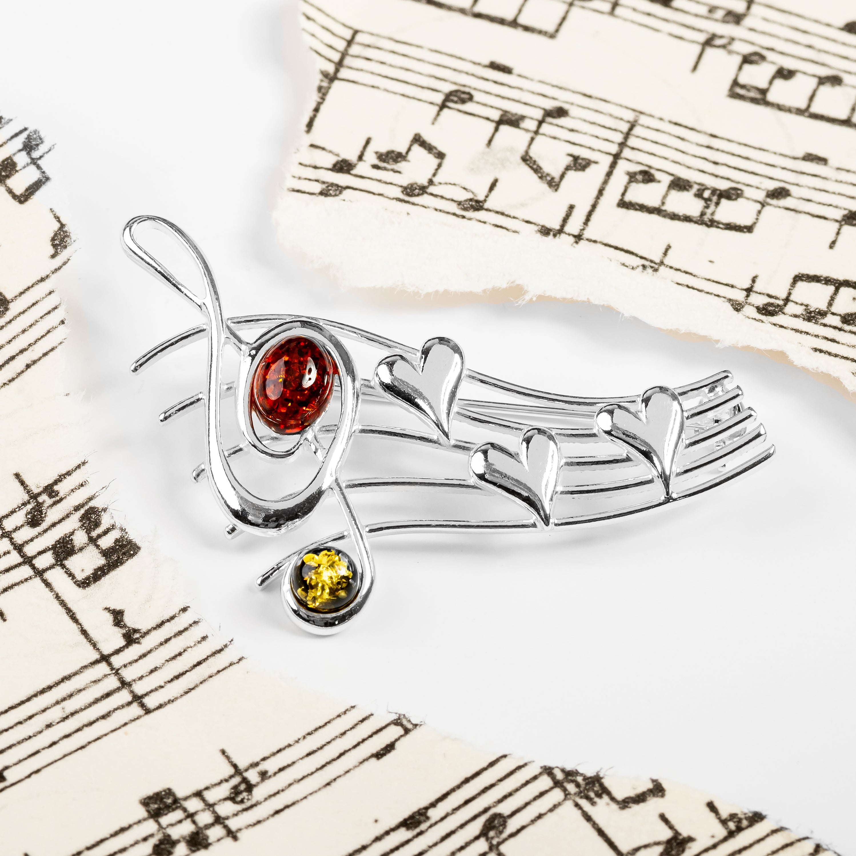 Ideal for the music lover in your life, our Silver and Amber Music Sheet Song Brooch will make a thoughtful gift.