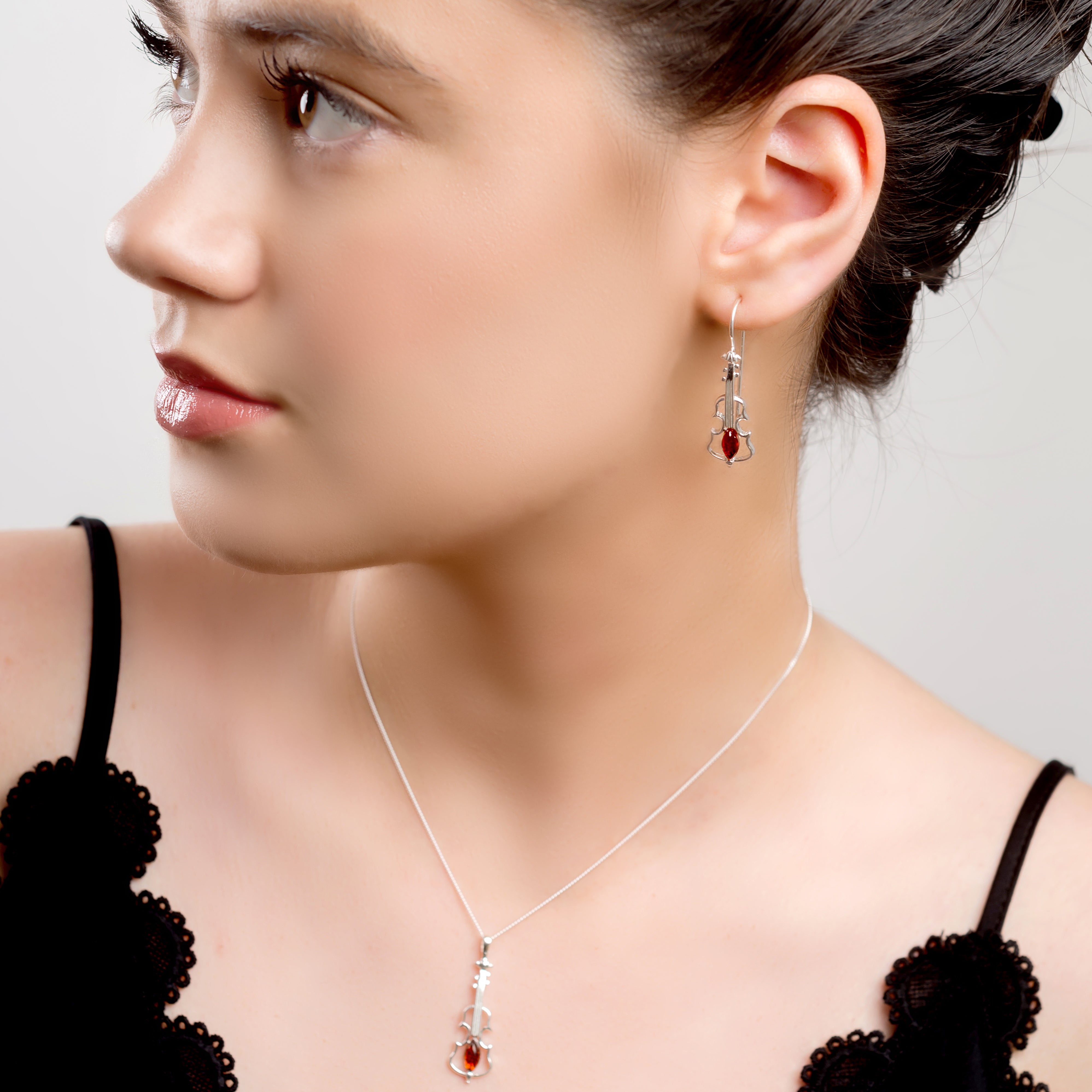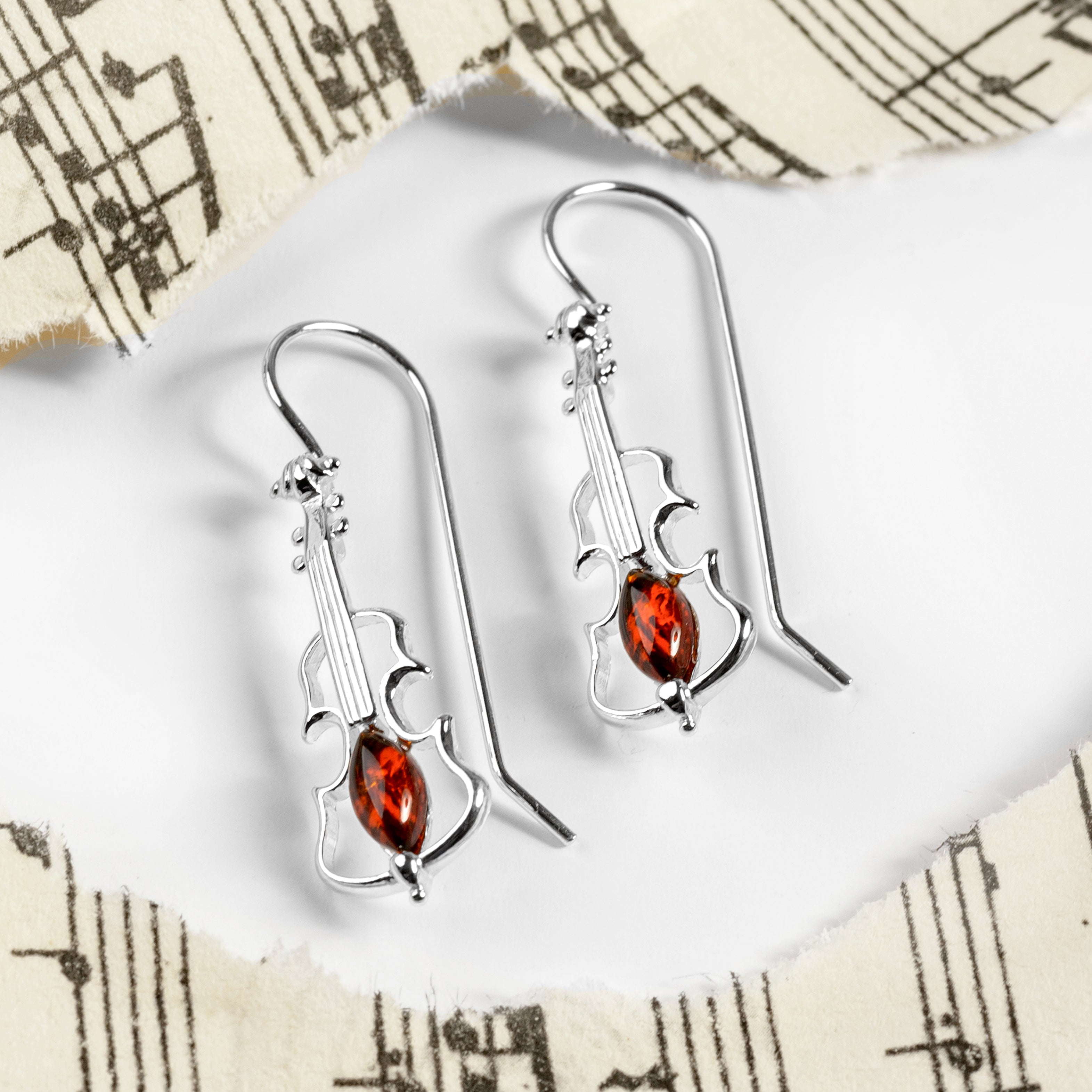 Surprise a player of string instruments with our Silver and Amber Violin Hook Earrings.