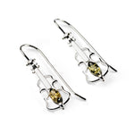 Surprise a player of string instruments with our Silver and Green Amber Violin Hook Earrings.